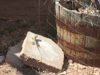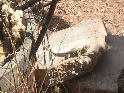 Half the size of a full grown iguana. The more common sort of lizard is much smaller. Good to see the reptiles again, though I’ll have to start paying attention to where TB’s walking. Last Spring he stepped right on a bull snake before he noticed it.