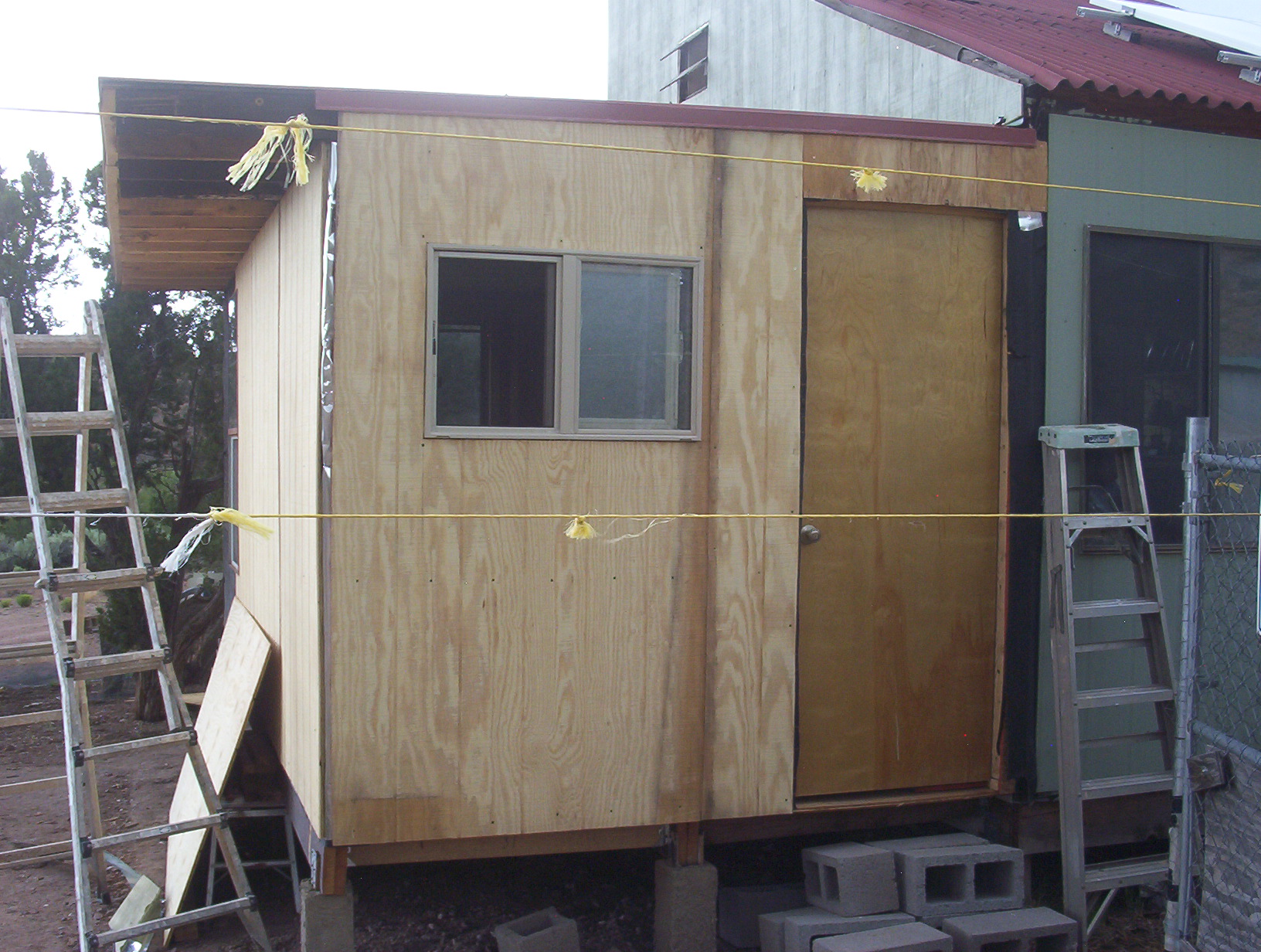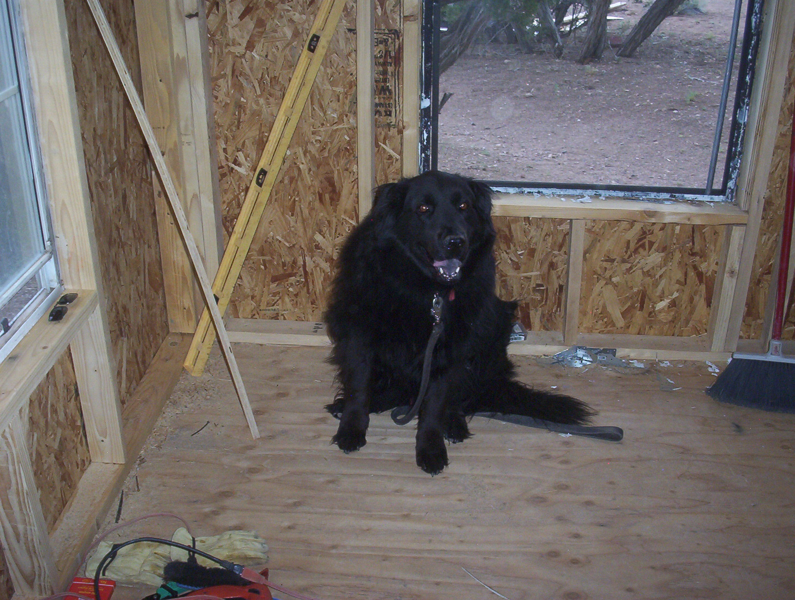 I got a solid six hours in today before the storm. Between baking, building and running over to S&L’s to tend to Ghost’s excretory needs, I almost but not quite finished the rough work on the addition’s south side.