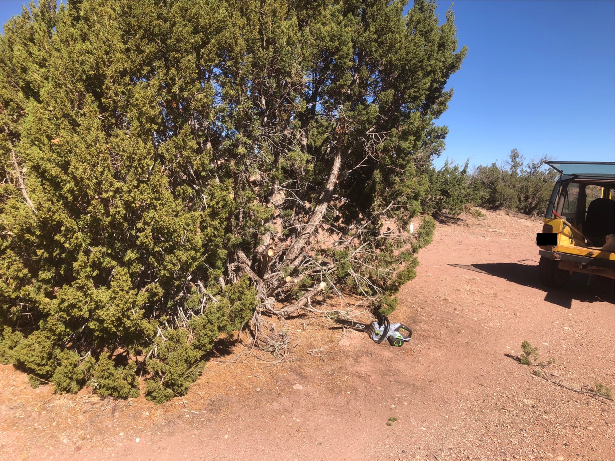 Then there’s this one big bush that’s been in the way of the driveway to Ian’s Cave ever since the big washout a few years ago that cost him 10 or 15 feet of front yard to the wash that runs in front of the cave. There’s not quite enough room for the Jeep and the bush but I’ve been forbidden to remove the bush. So I just trim it every now and then.