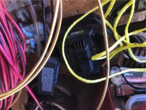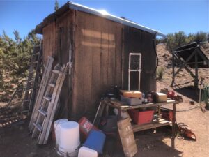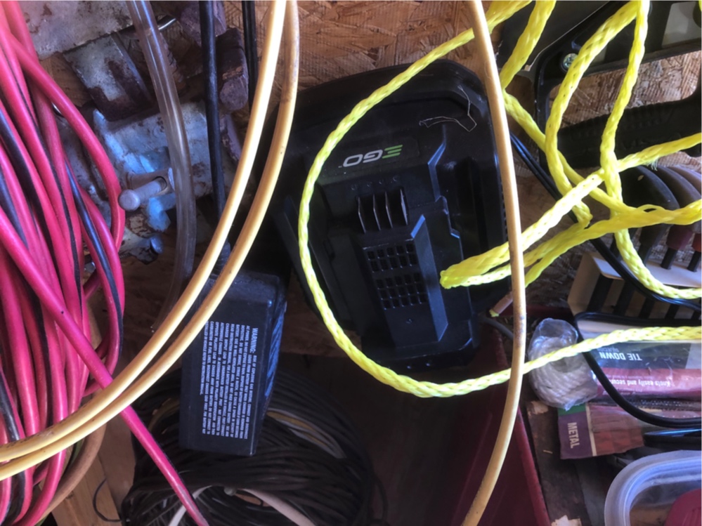 In my defense it was a falling-down shed that somebody else paid me to remove, being unspecific as to what I did with the parts. This was in 2012, just when I was needing a shed for my own inverter, batteries and charge controller so I knocked it down and inexpertly but quickly put it back together where it is now. And I’ve sort of lived with it ever since. There’s room for my tools and fasteners and such – and roughly half the rats in Eastern Arizona. There’s one shelf that’s always a real embarrassment. In April my older brothers came to visit and I wanted to show them how my power system had evolved – but I really didn’t want them to see the inside of that shed. So it wasn’t out of the realm of possibility that the chainsaw’s charger was on that shelf somewhere but just buried in debris since I hadn’t used it in almost a year.