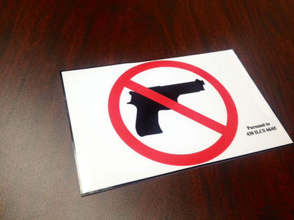 Lincoln-Way Community High School District 210 spokeswoman Stacy Holland said the stickers have been posted at entryways to all four high schools with little fanfare. They are posted next to the stickers that remind students and visitors that smoking is not allowed and that hats need to be removed before entering the building, she said.