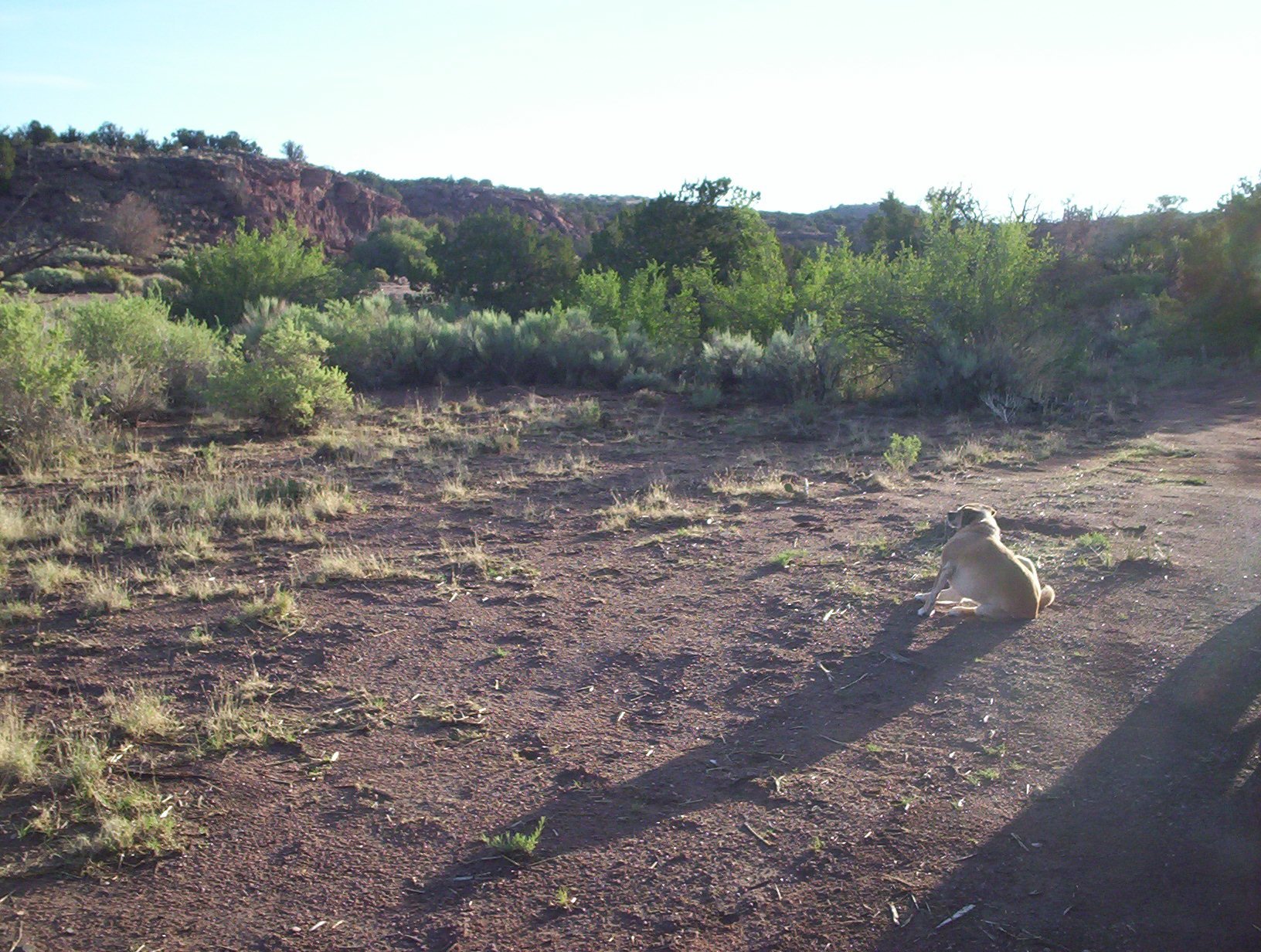 Ghost has one distinction among us: He’s the only one who was born here. He was a rescue pup from a local pound and came to the Gulch at an absurd age. LB also arrived as a fuzzy little pup, but old enough to be ready for his life apart from momma and the litter. Ghost, as I understand it, has never known anything else but right here, in our home that’s made of heat and cold and glare and dirt and juniper and cactus and nondescript barely-not-dying bushes, where everything that lives must be approached with caution.