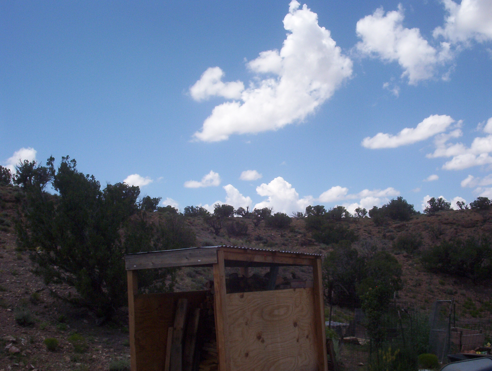 …but the rain attacked before the paint was fully dry. And then every time I went outside with a paintbrush it started raining again. This went on till I finally gave up around three. As soon as I finished washing the paintbrush – in the rain – the clouds disappeared.