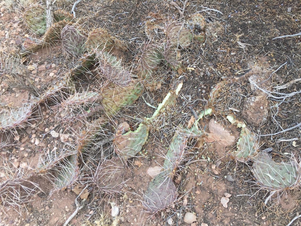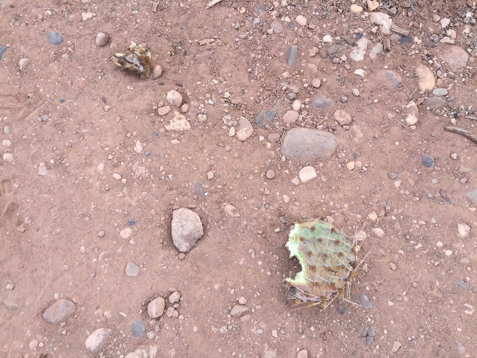 Local rodents, particularly packrats, like to chew pieces off prickly pears and bring them to their nests. Whether this is for moisture or defense, I’ve never been sure; packrats fill their nests with all sorts of things including rocks and dog turds. I only mind when I have to clean out a nest and one other time…