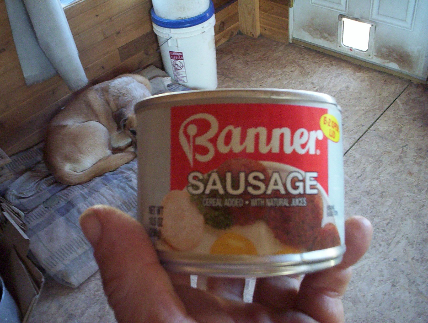 All I can say about Banner canned sausage is Oh. Dear. God. This is the worst canned food product I’ve ever tried, and I’ve tried canned corn beef hash. I’ve tried canned menudo. I’ve seen (but never tried) canned haggis. None of those things are as horrible as Banner canned sausage, which (guessing here) consists of 99.736% recycled fat, some wheat, and a homeopathic dose of …never mind, let me just go ahead and print the ingredients: