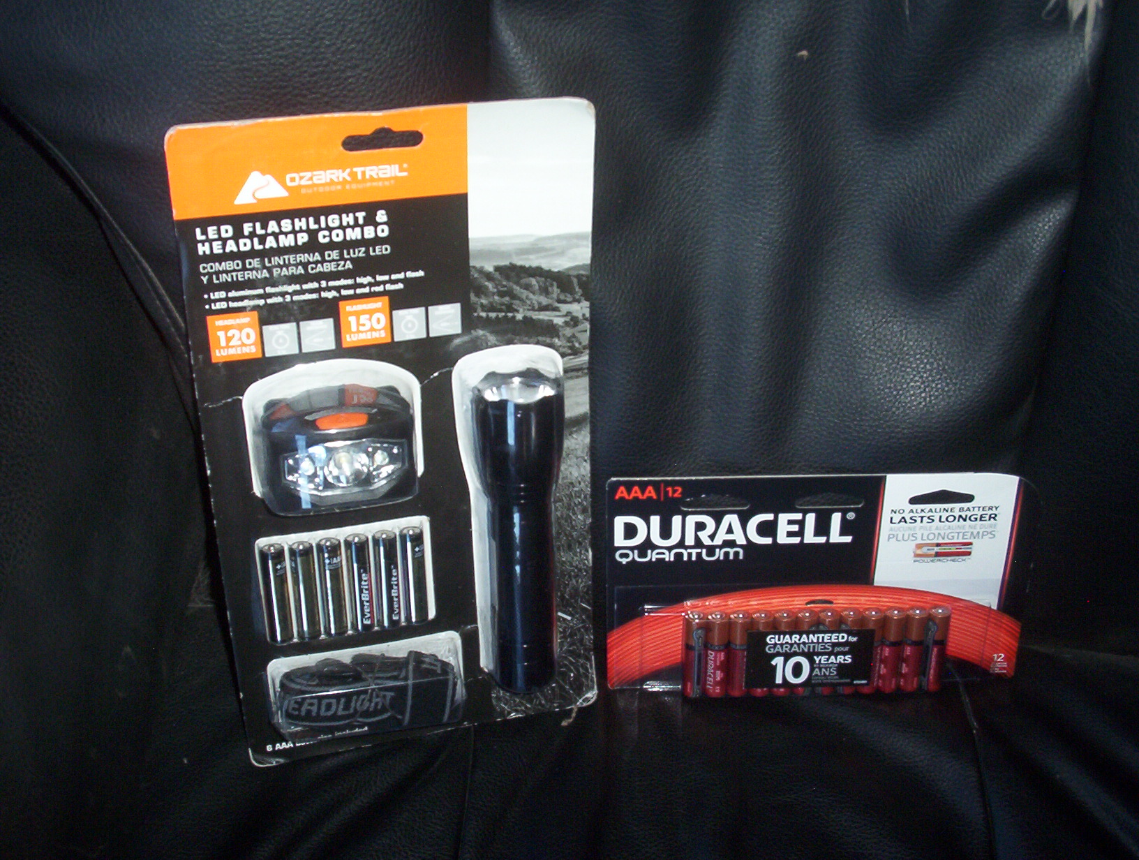 LED flashlight and headlamp, thoughtfully including extra batteries! And by total coincidence I just opened my last package of four AAAs for my digital thermometer.