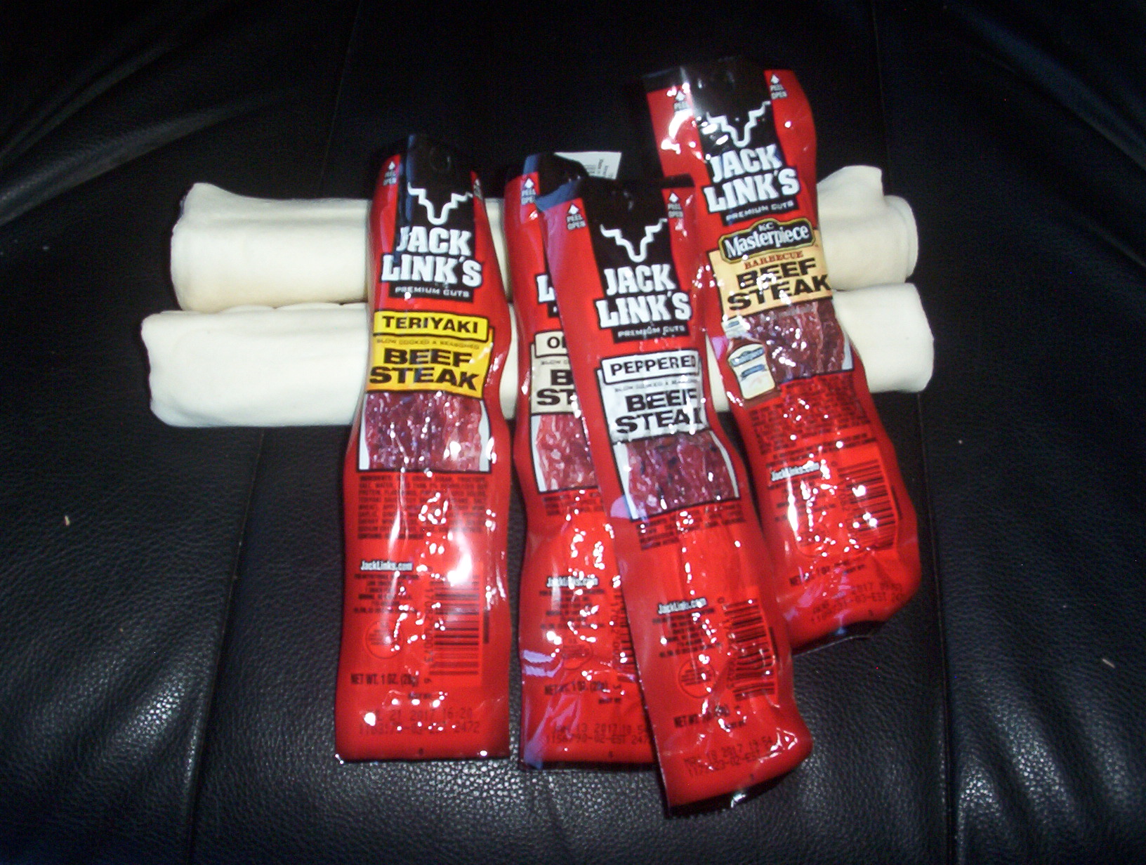 Snacky goodies! Always a pleasant surprise. Also, LB asks me to mention that he likes leather bones. I don’t know why he keeps saying that. But I’m going to take a hacksaw to these and cut them in half before he gets them. Too much kinda binds him up. 🙂