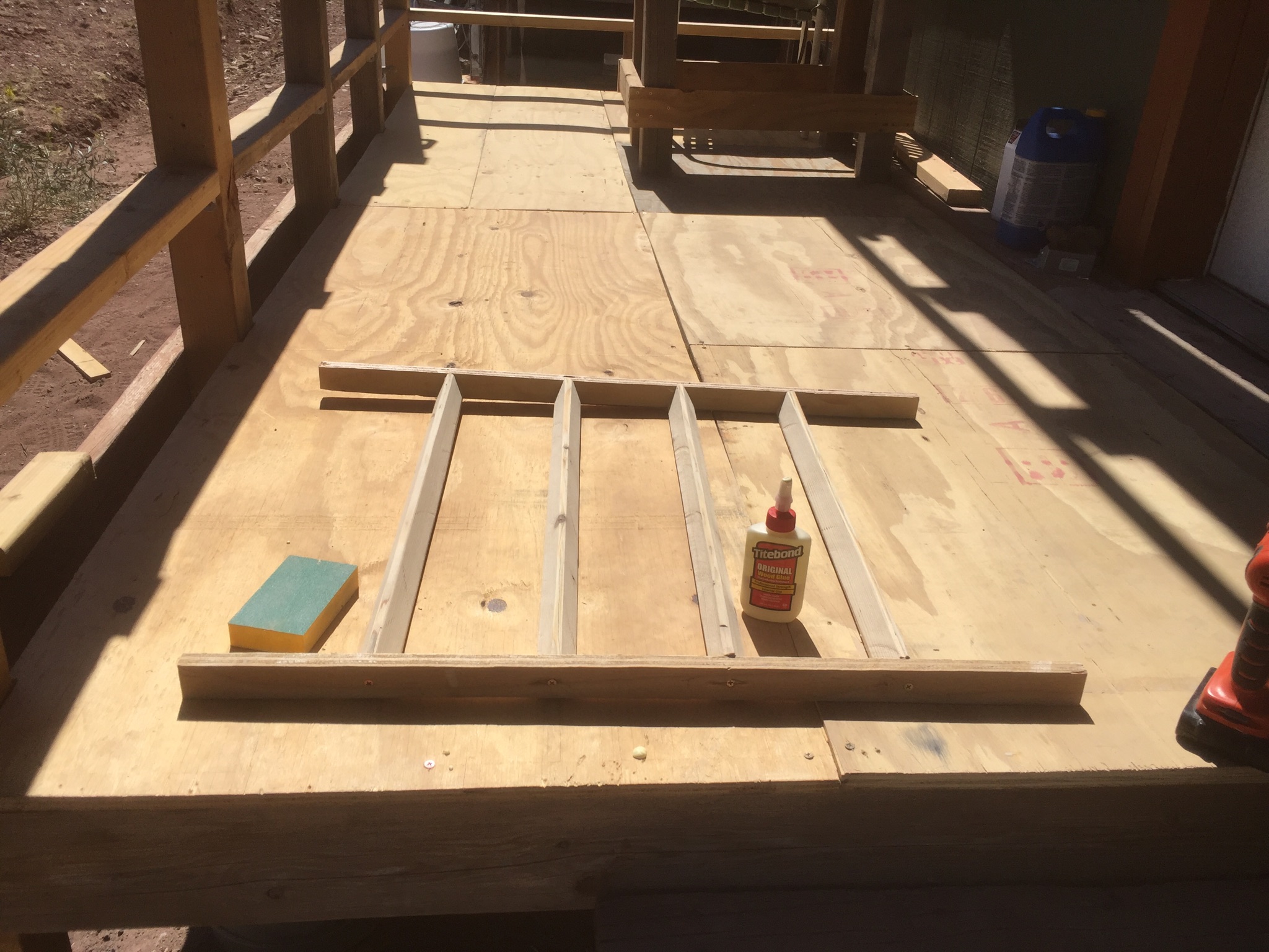 …and then screwing the plywood to the top and bottom railings.
