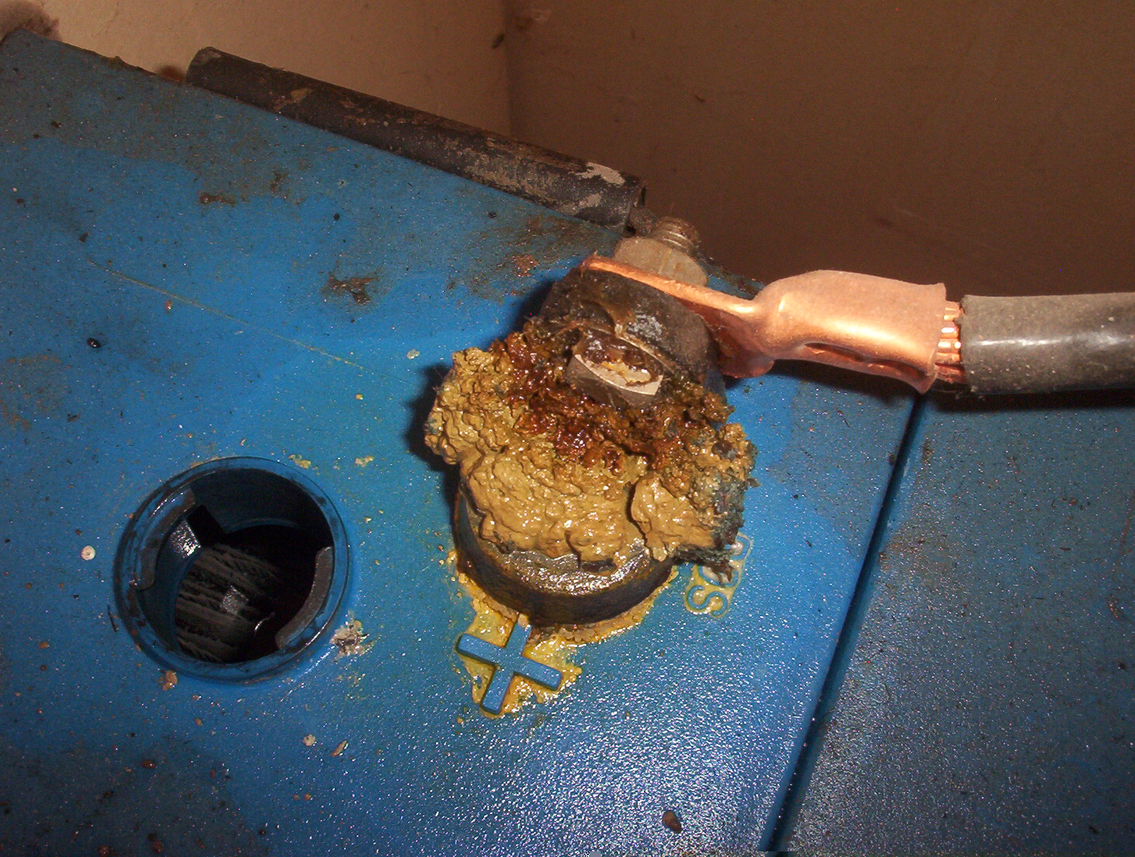 “Corrosion on the terminals is due to hydrogen gas being released from the acid in the battery. It mixes with other things in the atmosphere under the hood and produces the corrosion you see on the terminals. Generally, if the corrosion is occurring on the negative terminal, your system is probably undercharging. If on the positive side, it is probably overcharging. Most often it will be seen on the negative side because the battery is usually in an undercharged situation. This is just the nature of the beast, I’m afraid.”