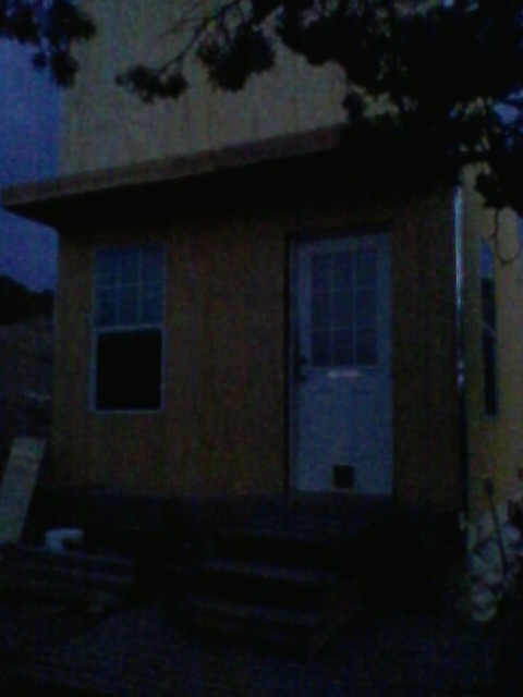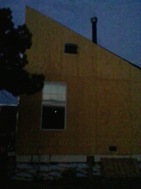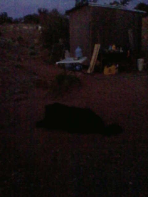 Forgive the photo quality, my camera awaits a mem card replacement…0622151951Ghost’s favorite post is just outboard of the driveway, where he can keep an eye on the wash. Dastardly cattle or tourists might attack at any time.0622151952LB, on the other hand, wants to be wherever Daddy is. And Daddy just finished taking his bath with a jug of sun-warmed water.0622151955And that’s after getting past my secret sin, so often displayed lately: Uncle Joel is afraid of of heights. And too many of this week’s chores are up high, like caulking around the loft windows. That’s done now, at least. And for most of the painting I can use a scaffold and a long pole. Much more comfortable.0622151954Truth is I’m going to be a while getting used to the Lair again. I’m reminded of times when my ex quite justifiably laughed at me, because anything that was just mine tended to degenerate into something only I knew how to use. The Lair’s exterior wasn’t exactly supposed to stop with the sheathing, it just did – and that was what I was used to, and except for the inescapable deterioration I wasn’t really unhappy with it. Now it’s starting to look a little more like a regular person’s house, and … well, let’s face it. I’m not really a regular person. I’m committed to finishing it, because I really love the lair and arguably it deserves a better owner than it has. But the further into the project I get, the less like my own home it seems.
