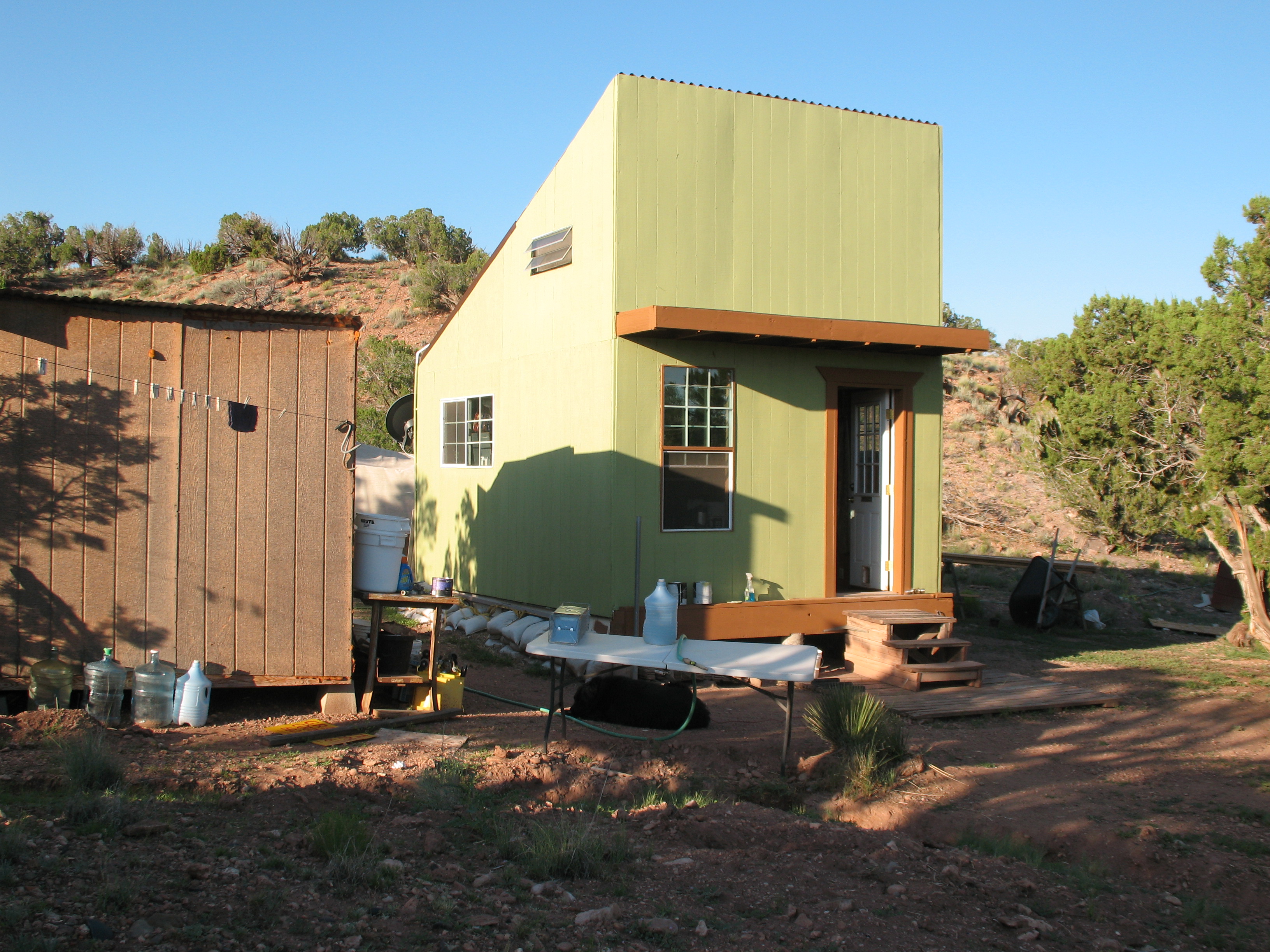 That first winter wasn’t very much more comfortable than it would have been in the RV, to be honest. The wind positively whistled through the walls and the OSB floor was frigid and the free woodstove flat didn’t work and I didn’t know enough about heating with wood to see what the problem was – or even that there was a problem at first. February of 2012 a chimney fire caused by creosote from all the smoky smoldering juniper fires made it clear something serious had to change, but even after I got a new woodstove the following December I was so paranoid at first that my first couple of winters in the Lair were colder than they needed to be. I gradually got over it.