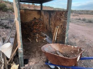 What DID class as a problem is where to take the old woodstove, and how to get it there. That sucker’s heavy. Even stripped down I could get it out of the cabin by myself but I couldn’t lift it high enough to get it into the Jeep. Happily, the aforementioned neighbor came to get firewood and between the two of us it was easy.