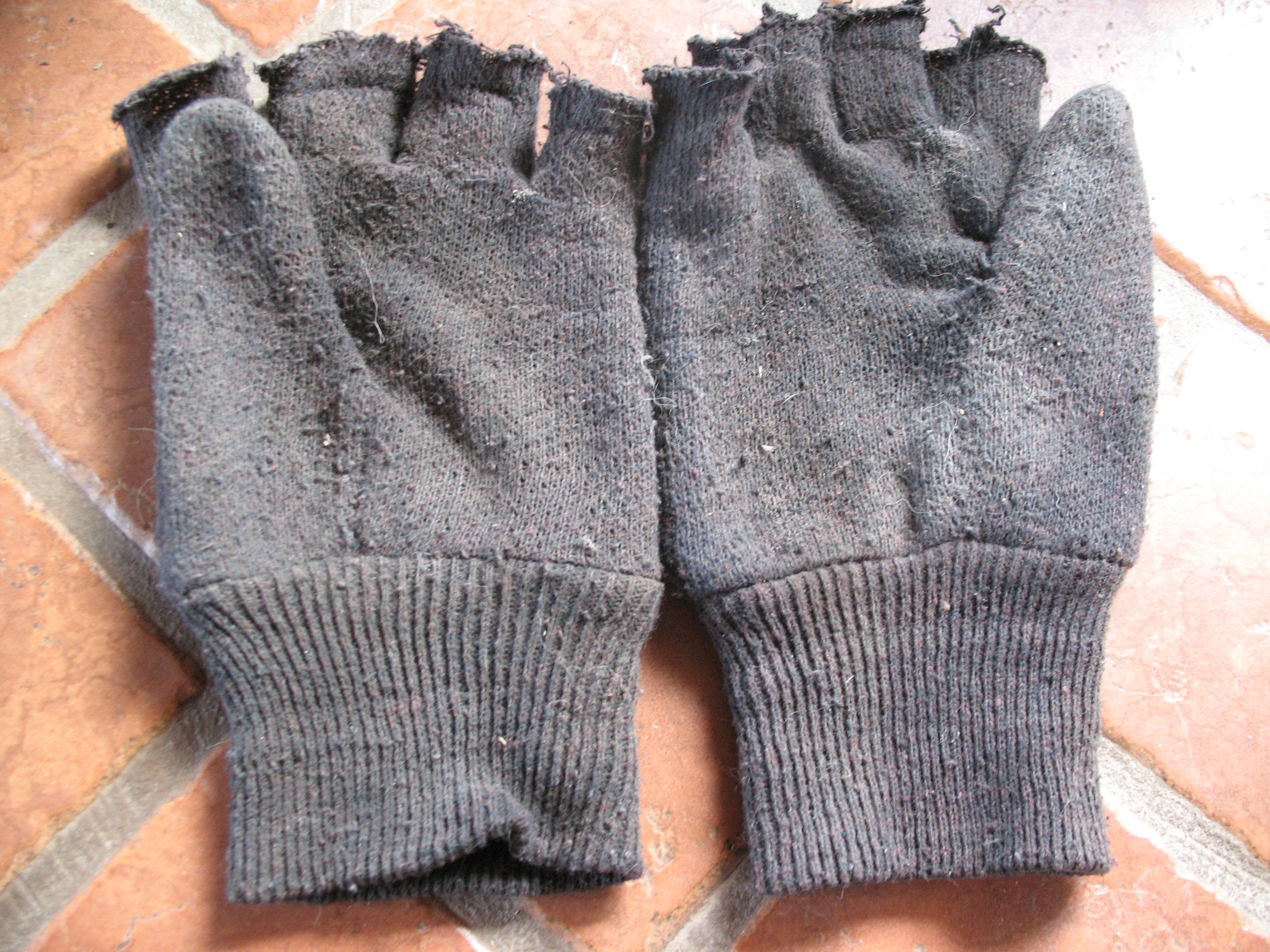 Buy a 3-pack of cheap jersey gloves and whack off all the fingers at the first or second knuckle. Since they get wet easily, I like to keep a couple or three pairs working. You can just toss them in the wash, and they’re not as bulky or expensive as fingerless wool gloves.