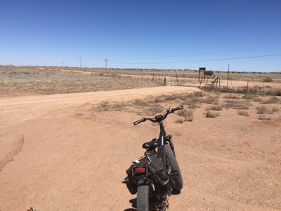 The cattlegate is something over five miles from the Lair by long winding road. I cheat and take the Jeep there and unload the bike. From the gate it’s almost exactly two and a half bumpy miles to pavement. From there it’s maybe another mile and a half to the start of what few stores there are. A pleasant ride, weather permitting. End to end, including an idle detour to see what’s down this road here, nine and a half miles on the clock.