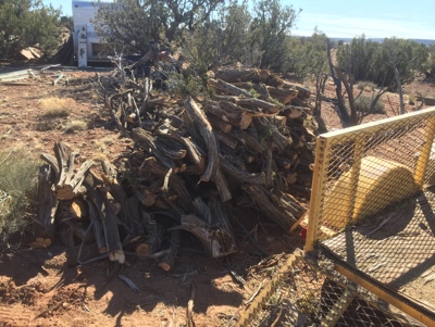 There was a lot more cut substantial wood than I expected. I keep my use of juniper to a healthy minimum, but Landlady’s stovepipe is shorter and double-walled and burns a lot hotter. It never even soots up. So it’s safer to use juniper in her stove.