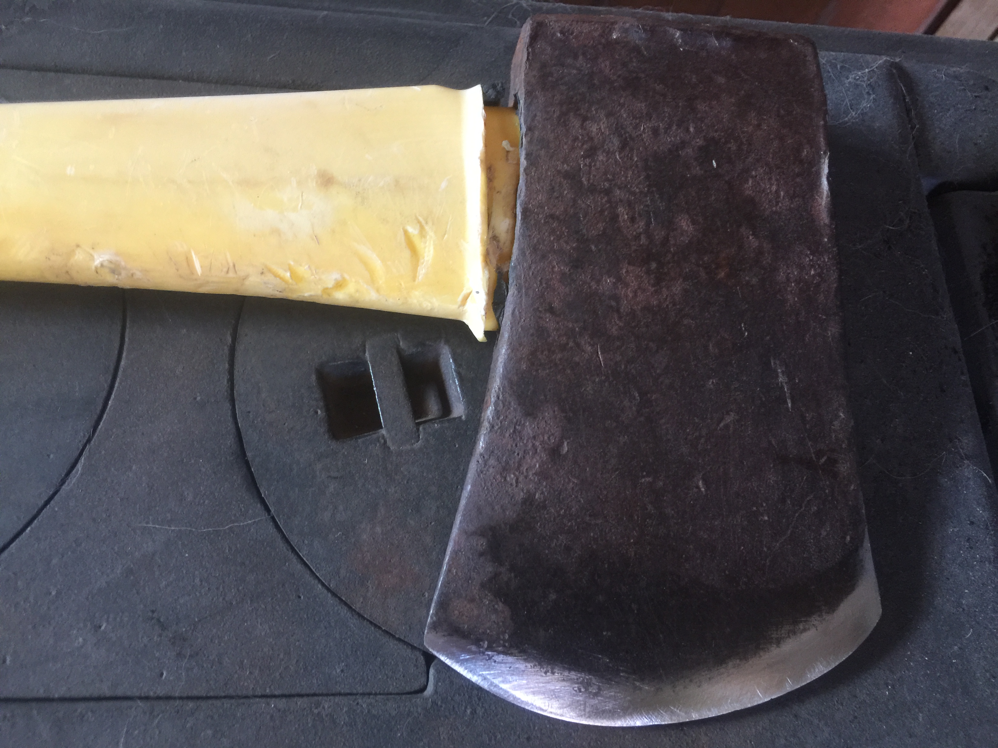 And sonuvagun, I really did buy a new bastard file at the hardware store this morning and blow a couple of hours at the bench vice in the afternoon sun, finally doing a number on my axe edge.