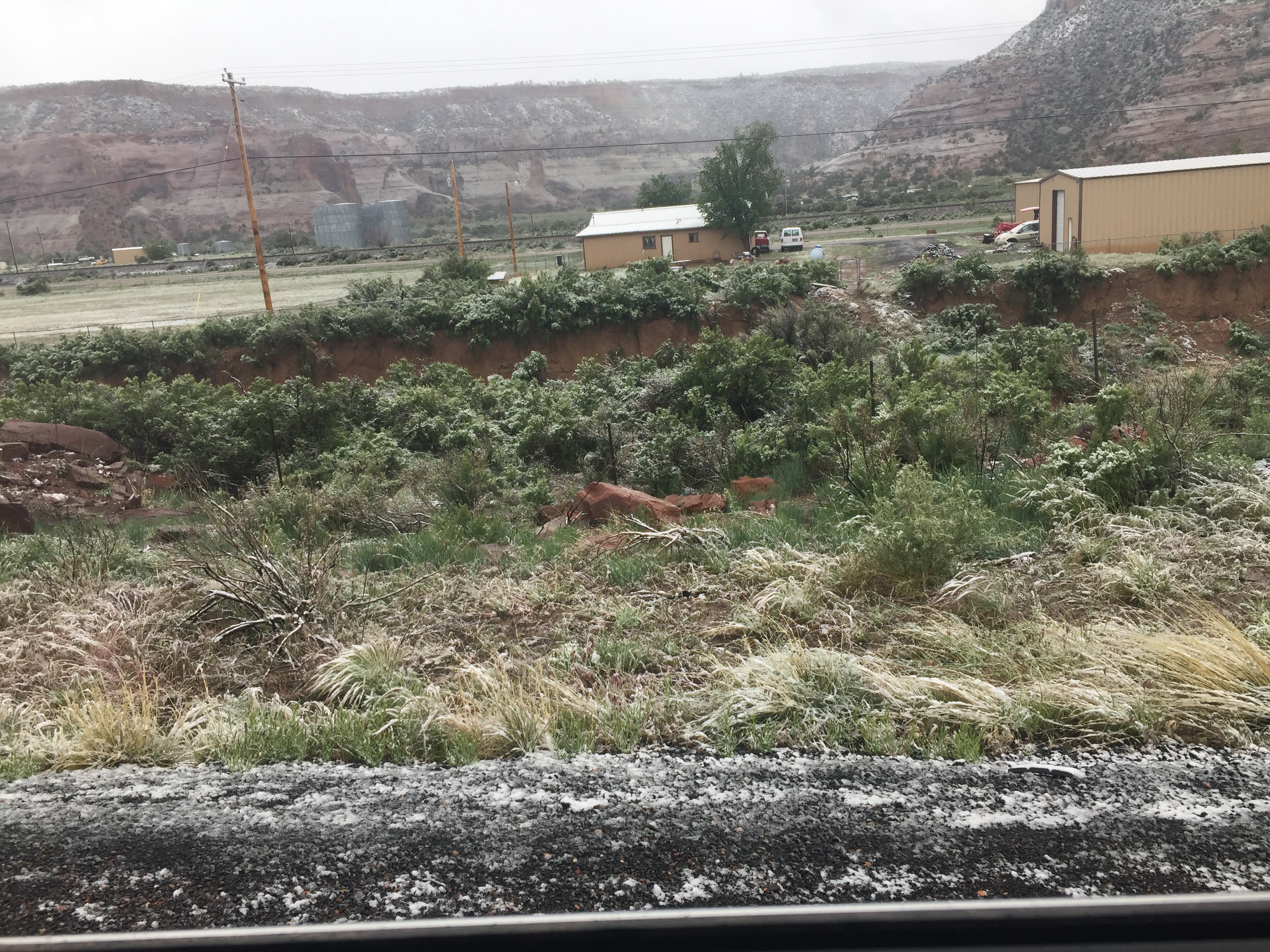 Snow on the Interstate?! I may have to re-plot my course for our trip to Kansas later this week, if this keeps up. Oh, and the weather guessers say the high in Phoenix is going to be 71 Wednesday. I believe y’all are about 20 to 30 degrees cooler than we are, may need to throw in something more than a sweatshirt.