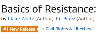 Claire and Kit Perez’s new book Basics of Resistance comes out April 19 but the Kindle version can be pre-ordered right now. And as of just a few minutes ago it had the banner above. #1!