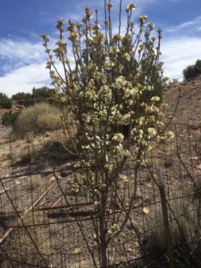 I hate that it always blooms in March, because the chance of a hard freeze before the buds mature is – well, pretty much definite. Not that there’s any danger that the poor thing will ever fruit anyway. Looking at it, if you live in a more fecund area of the earth you’d have a hard time believing that this tiny ‘tree’ is closer to ten years old than five. But every year it grows a little more.