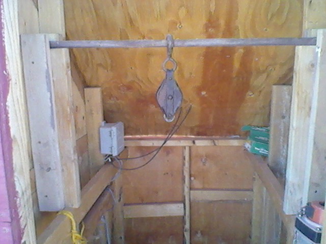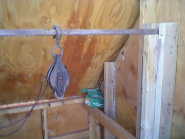 …but I can make it easier than last time.0206151612aLast time the crossbar for the pulley was improvised – at best – and at a bad height and kind of scary. Today 16 feet of two-by gave up life to make things easier and more secure. The crossbar isn’t a permanent part of the building, but its mounts certainly are.0206151612