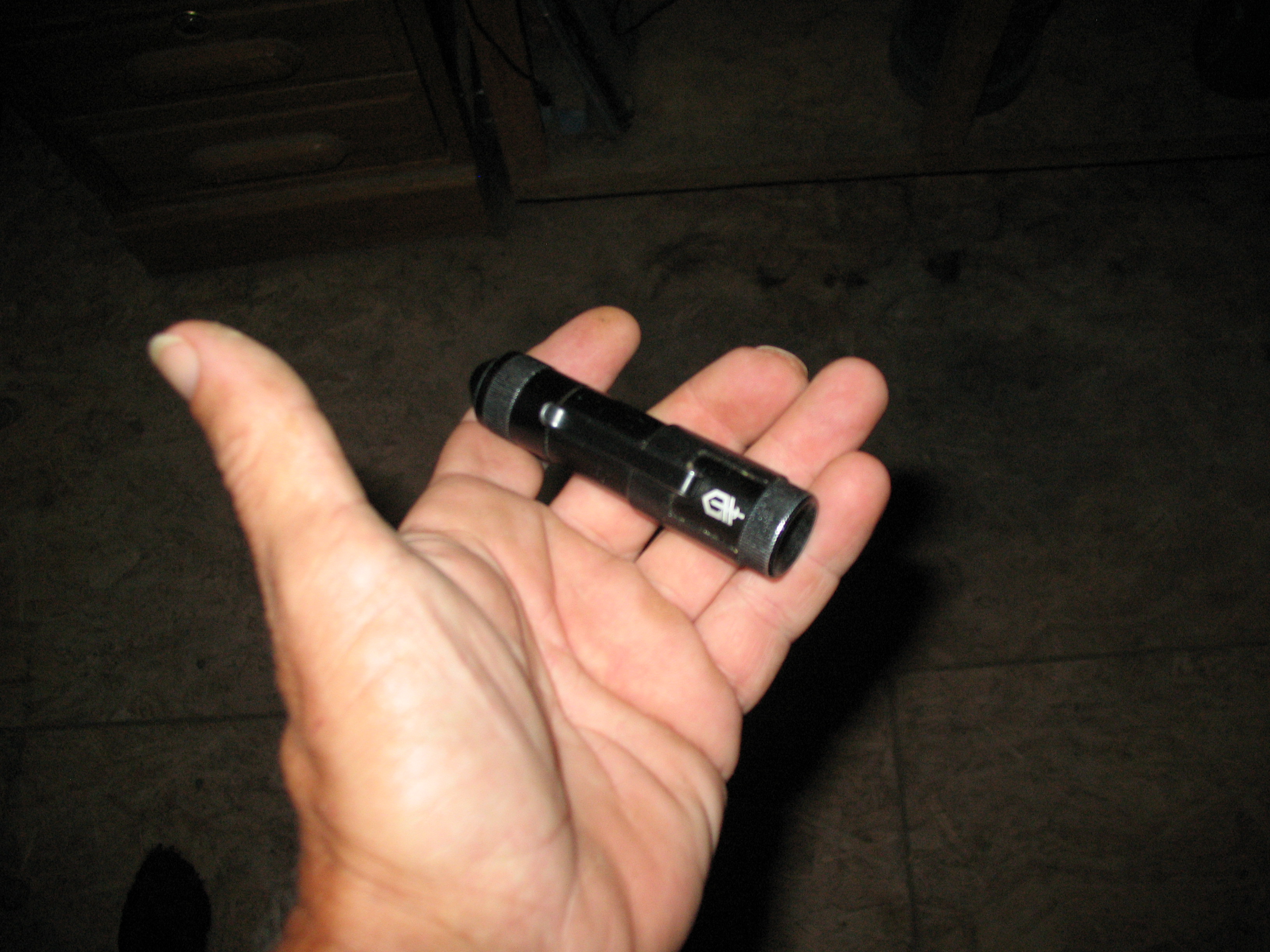 It’s just a one-AA, one-LED penlight, really. Doesn’t throw as much light as a burn-out-the-bad-guys’-retinas ‘tactical’ flash of the sort I would have expected to be essential to life when I first moved here, but that’s actually good. It produced a useful amount of light, doesn’t blind chickens, and permits hand-free use on the rare occasions when I need that…