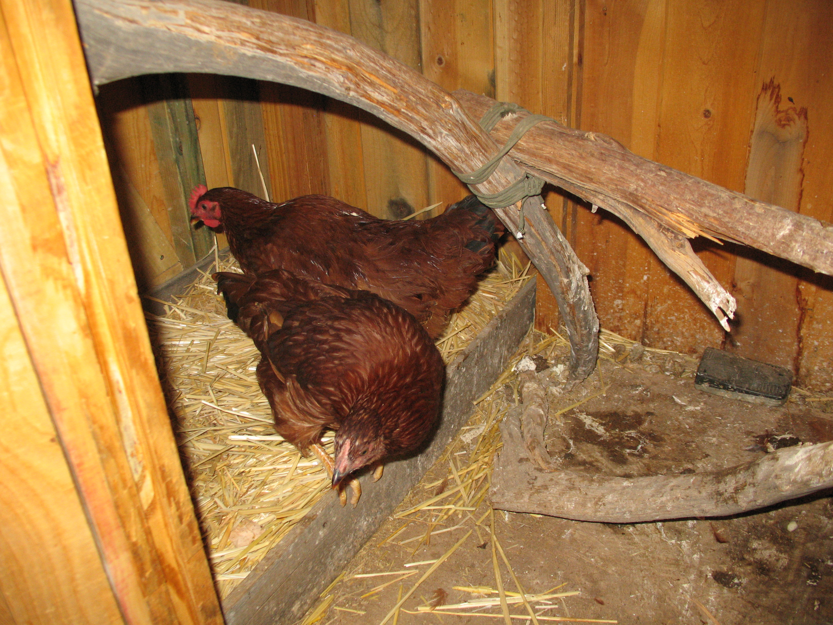 Found the other two in the nesting box, probably unable to figure out the small upper door once they’d gone down from the perch. Because the only thing stupider than a chicken is a young chicken. But all in all, so far everything’s fine. Or as fine as anything ever gets in the mind of a chicken.