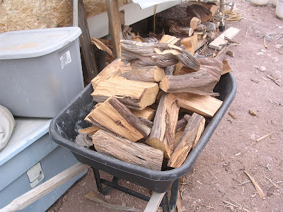 The weather was supposed to get nasty and stay nastier, so I figured I’d better cut and split all the logwood I cut the day before. Good haul, too: I split enough to fill the wheelbarrow about four times, which is several days’ worth.