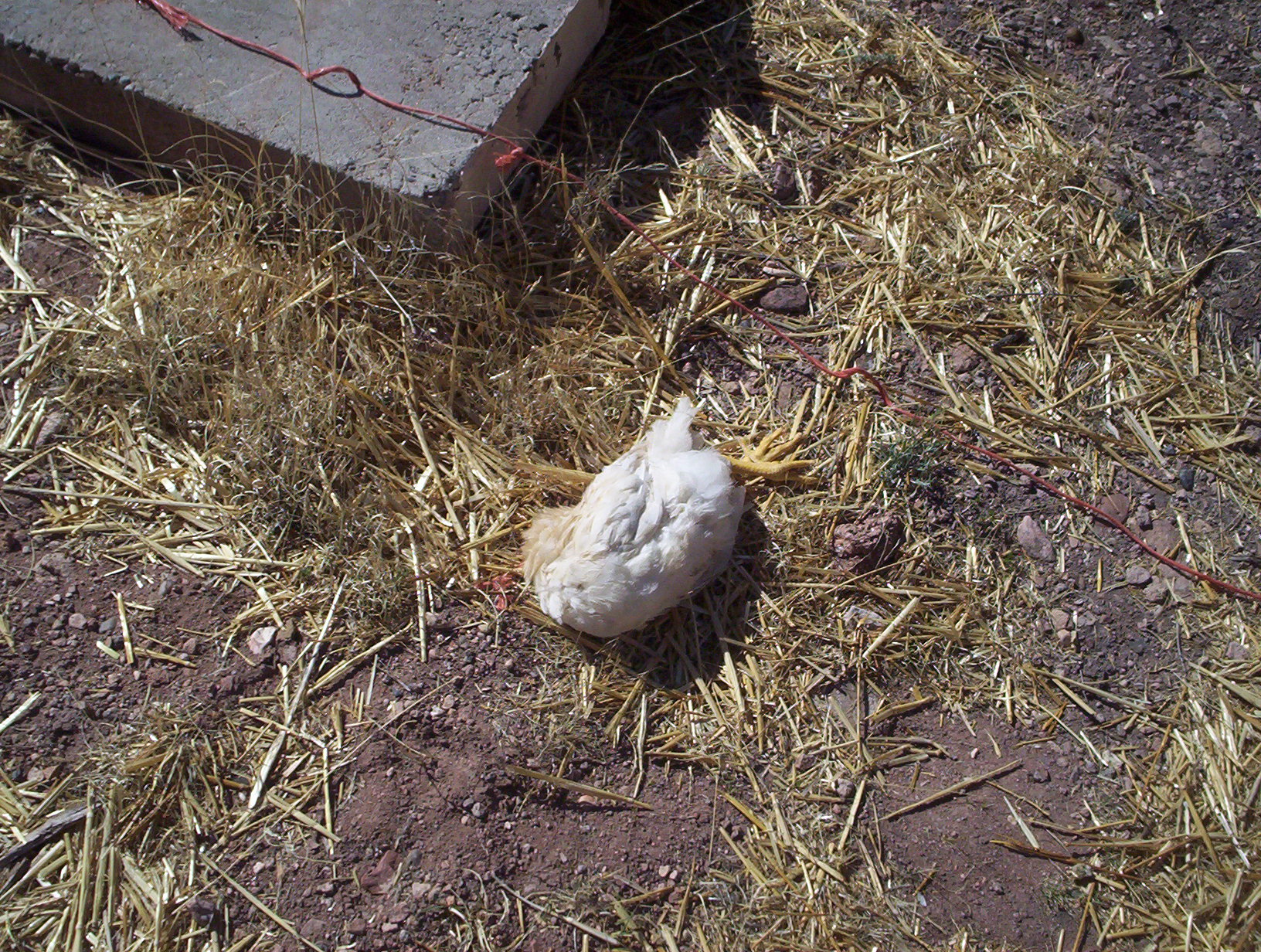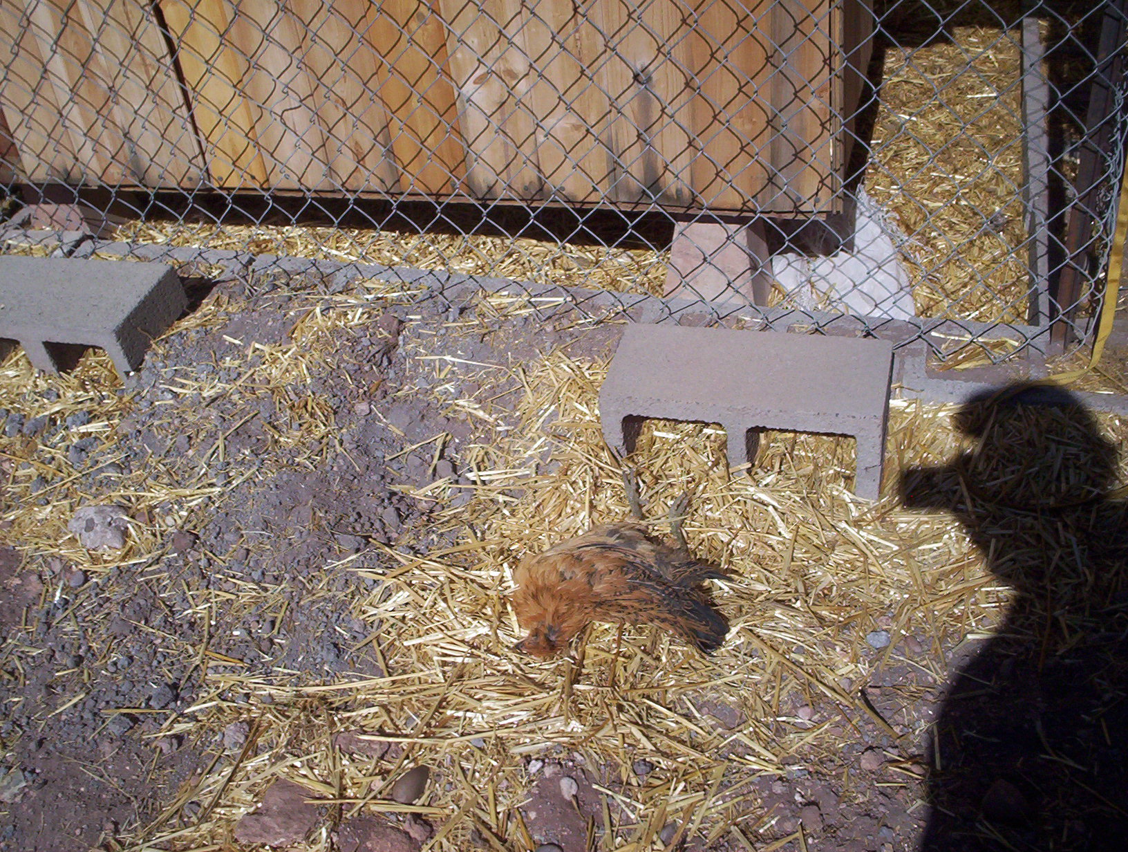 This is a problem. He has never shown any interest in captive chickens, but he apparently decided these were wild and therefore fair game.