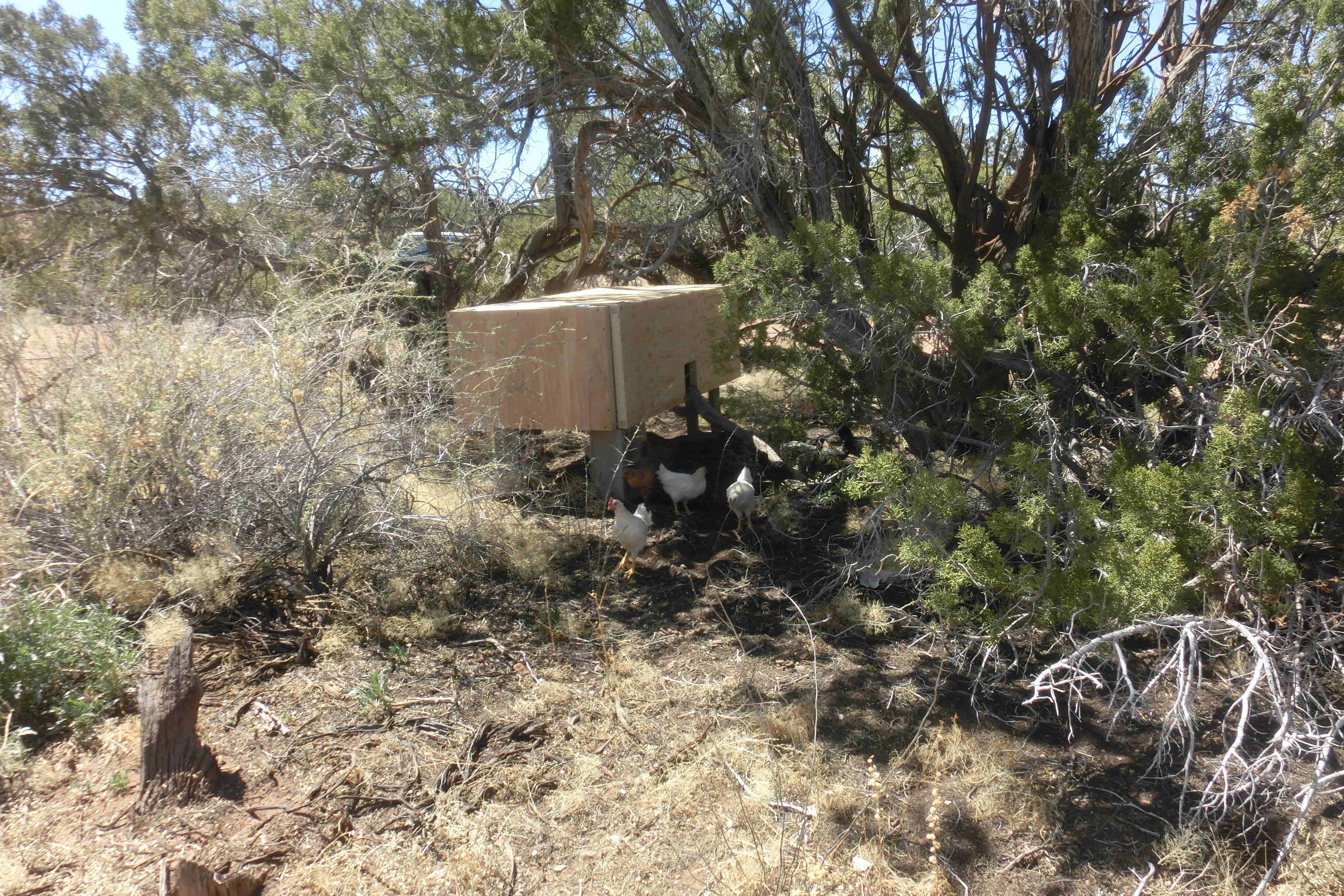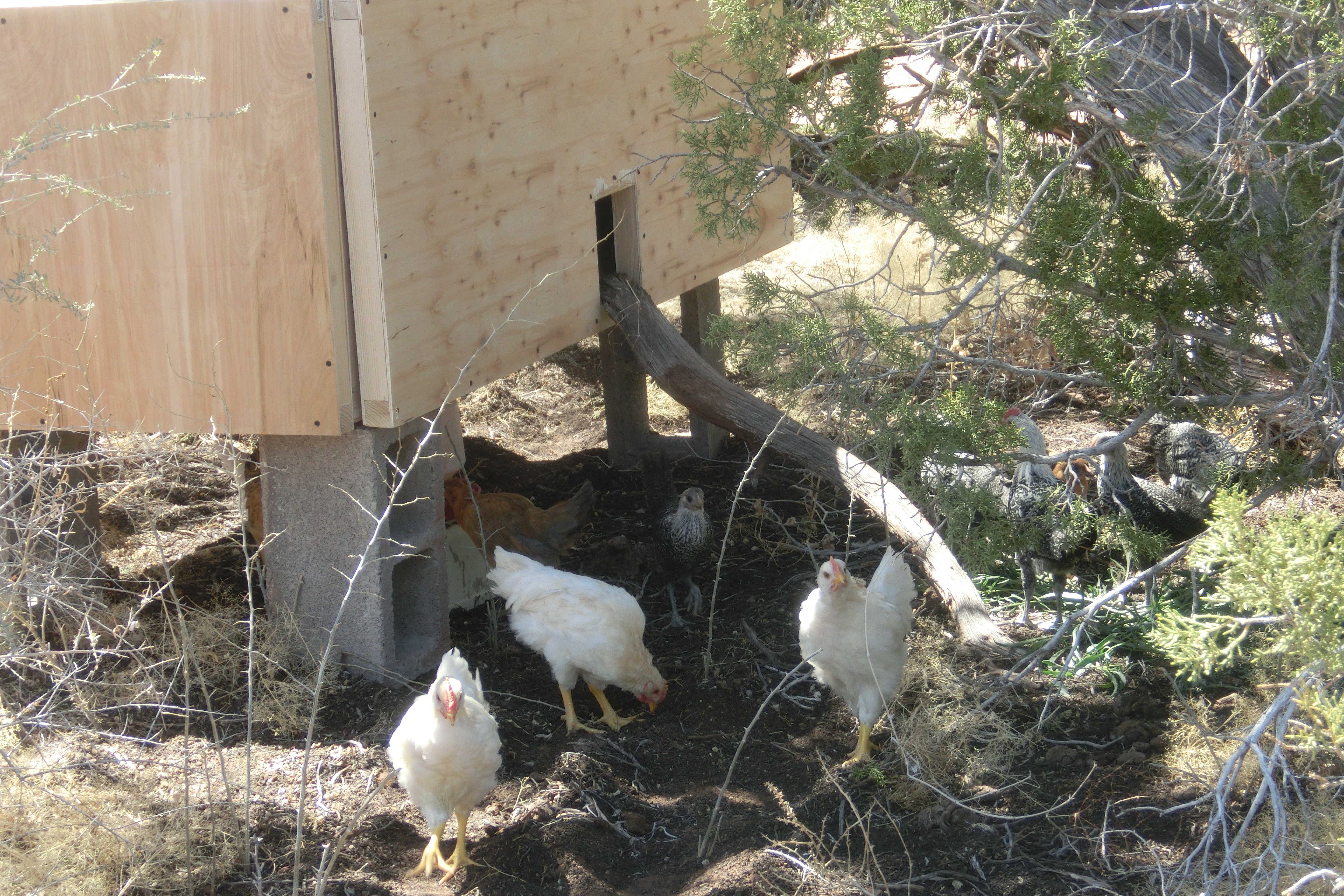 They’ll roost in the junipers. The “coop” is too small and too close to the ground. If they had been raised in the coop, and had roosted there from the start, maybe… but not this late in their lives.
