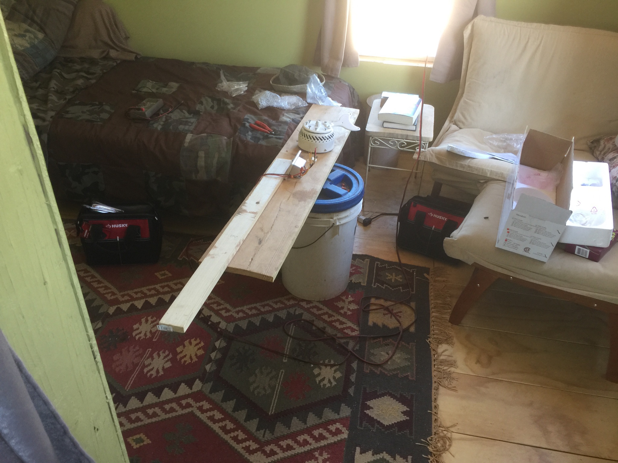 BB sent me a 12v ceiling fan last autumn, which would have helped make the new propane-heated bedroom even more comfortable than it was. Alas I installed a big heavy-duty electrical box for it and ran duplex, and it turns out to want no electrical box but has a PWM controller that requires four wires.
