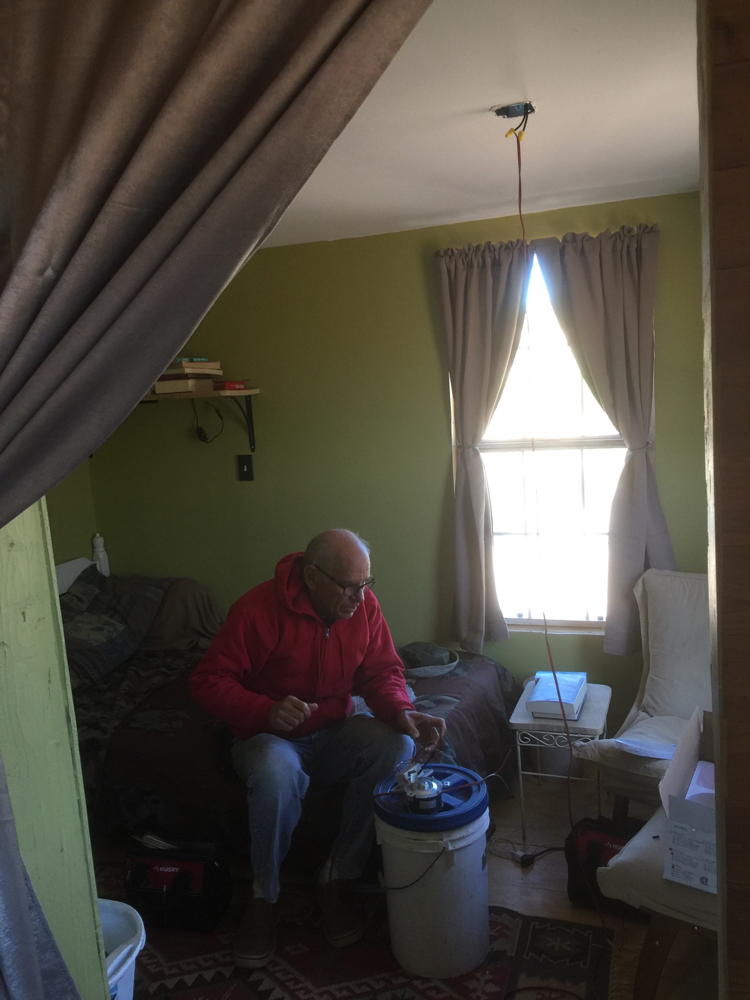 BB is much more of an electrician than I am. So this was a perfect day to look into some pesky electrical projects that have been hanging fire. Like the bedroom ceiling fan…