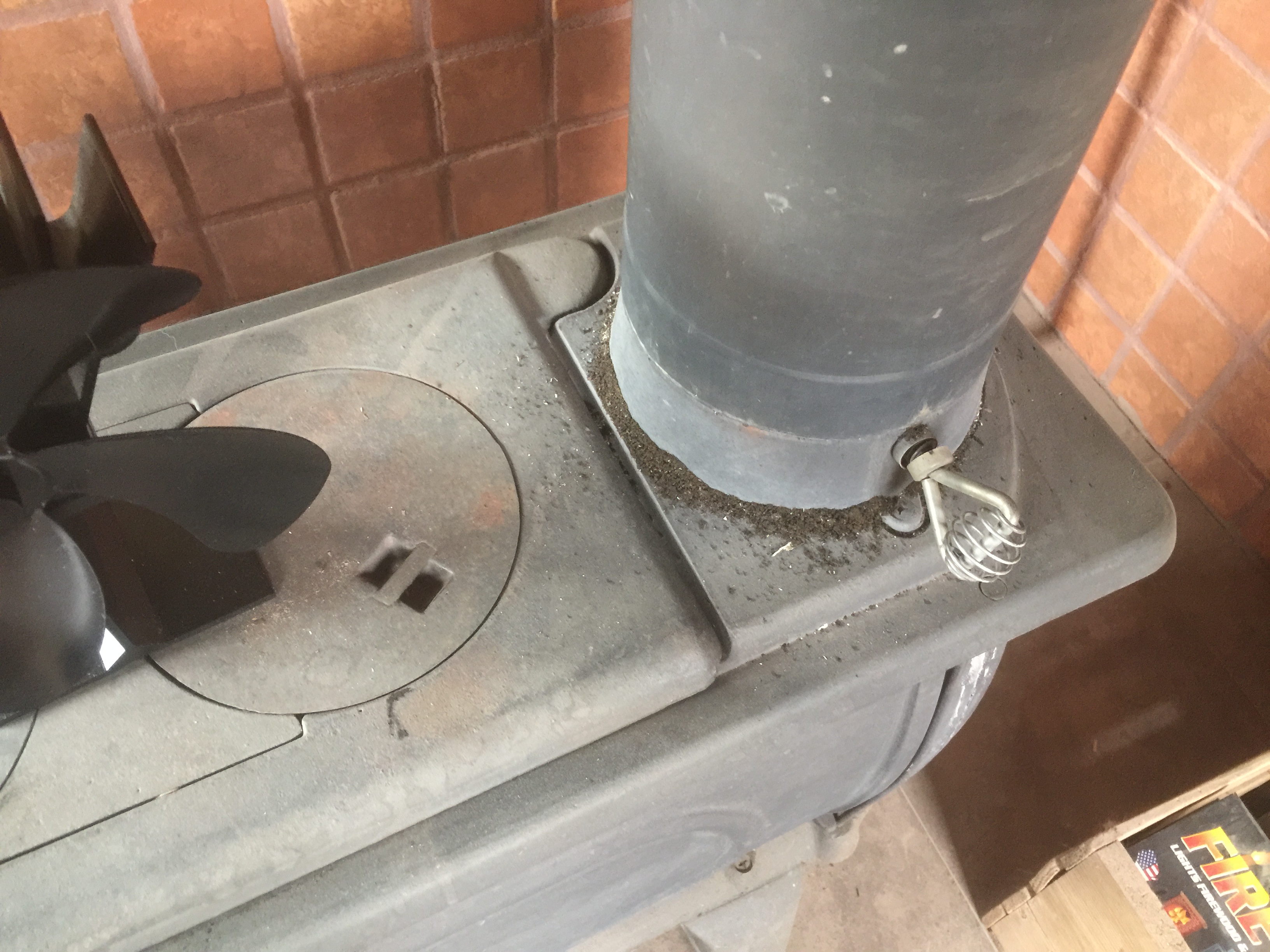 In a way I was kind of proud of myself – once I was so paranoid about this that I could barely go a week without cleaning it. Now it hasn’t been cleaned since the beginning of the season. It’s just soot, the stove burns nice and hot now and I use hardly any juniper, so it’s not building up creosote like in the disastrous winter of ’11-’12. But still, definitely time to clean the pipe.