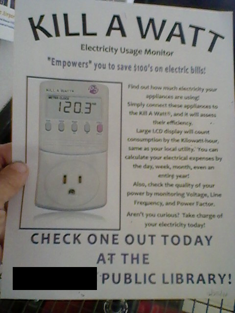 Plugging the term “Kill a watt public library” into Google, I get about 237,000 results. So yes, it must be a thing. That said, I haven’t seen any in my own library.