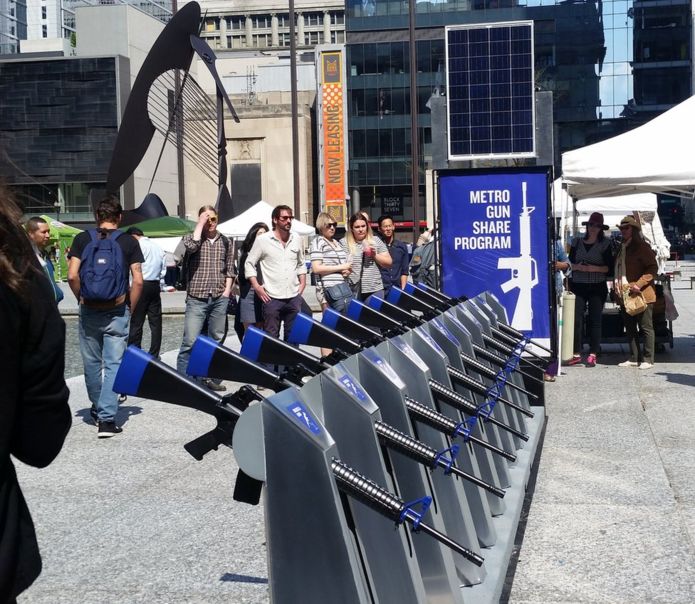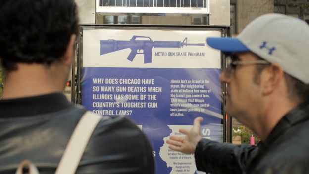 Activists mock US gun culture with Chicago ‘gun-sharing’ dock