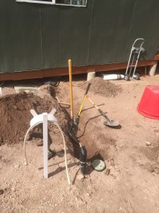 I expected it to take a while to dig up the trench, but I didn’t expect it to be so damned hard. Yeah, it’s packed clay and needed to be hammered out with a mattock and I hate using my mattock. But it’s only 18 inches at its deepest and less than 10 feet long, and not as though I haven’t done it before, so why was I having to stop every five minutes to catch my breath? Well, there’s building season and sitting season. At the end of building season, I’m typically in pretty good physical shape. At the end of sitting season, I’m a marshmallow. And marshmallows aren’t natural digging machines. So I’m going to go ahead and cut myself some slack over this.