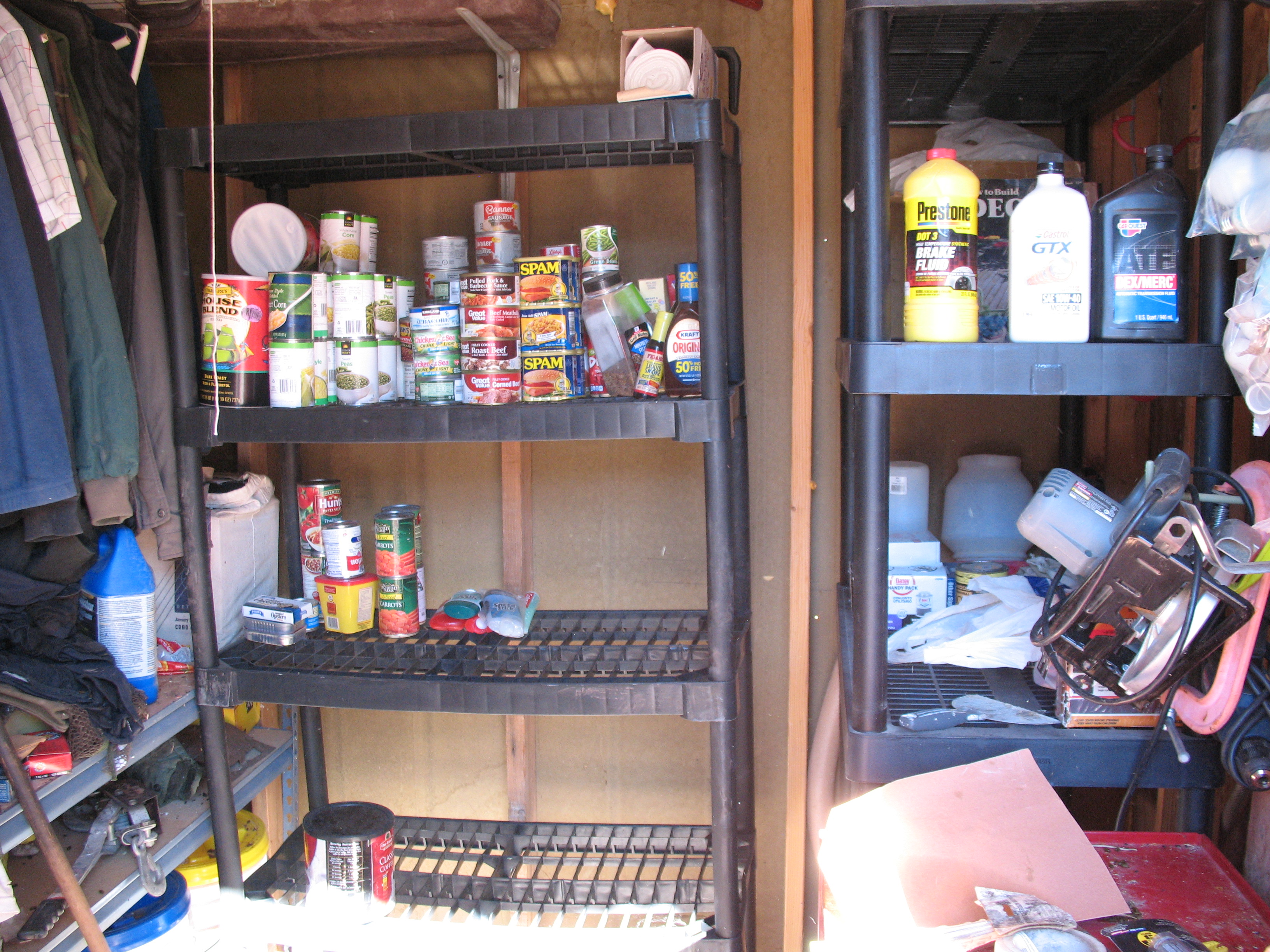 We brought those plastic shelves and put wife’s canned goods on them. Despite not even approaching the specified weight limit, the things sagged and caused me to have nightmares of boxes and boxes of broken canning jars on the floor, after all the effort she put into it. We bought a good steel shelf (from costco I think) and moved them over to it, now using the plastic shelves for lighter stuff that wouldn’t break if it did hit the floor. I now sleep better…