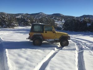There aren’t many times during the average year when having learned to drive in Michigan is a big help here in the high desert, but I’m spending my short driving time recalling old lessons. We’re in mountains and this is one of the very few straight and level stretches between me and S&L’s place…