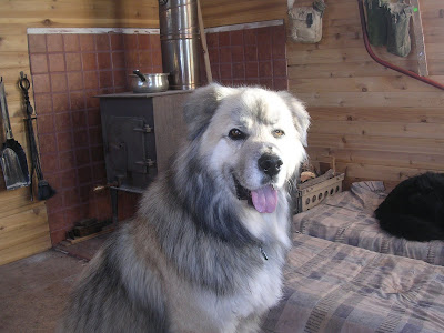 Landlady came up Saturday afternoon with her perpetual puppy Dharma, the dog who always wants to play. And because Ghost sorta/kinda remembers that technically he’s Landlady’s dog, he followed her back to the Meadow House and wanted to stay there. Until he’d had enough of Dharma, and then he cross-countried it back to the Lair. Then yesterday morning he disappeared again – until the afternoon when Ian’s Mom came to the Meadow House with her dog Basie.…and then he cross-countried it back to the Lair. Except this morning some mom time seemed like a good idea again, so off he went.
