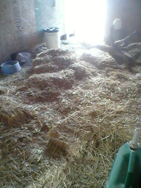 Spread out the rest of the bale in the big chickenhouse, because it was getting kind of gamy in there…