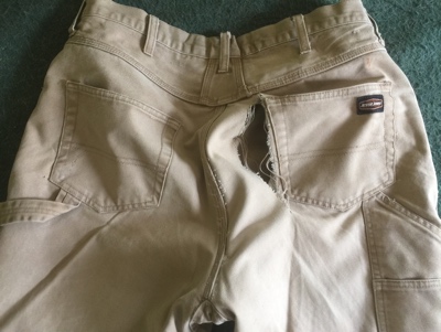…and knew I’d lost another old friend. Seven or eight years ago a neighbor was getting rid of a bunch of these canvas jeans, rather heavily used and requiring some patches here and there but fundamentally in good shape and much more appropriate for winter than BDUs. They’ve served me well, but this is the third pair I’ve retired this winter. Guess they’re done, and I’ll come up with something better before next winter.