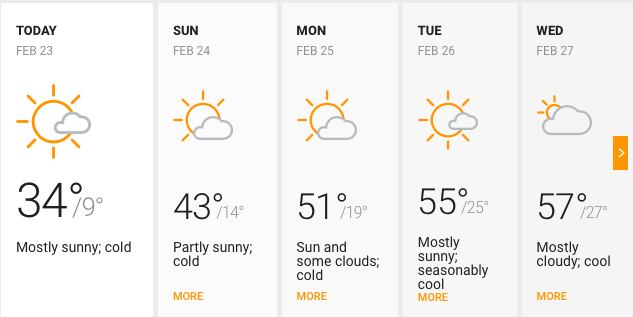 Today’s supposed to be clear and cold, and then things are supposed to get more seasonal which here in late February means not that bad. I can dream.