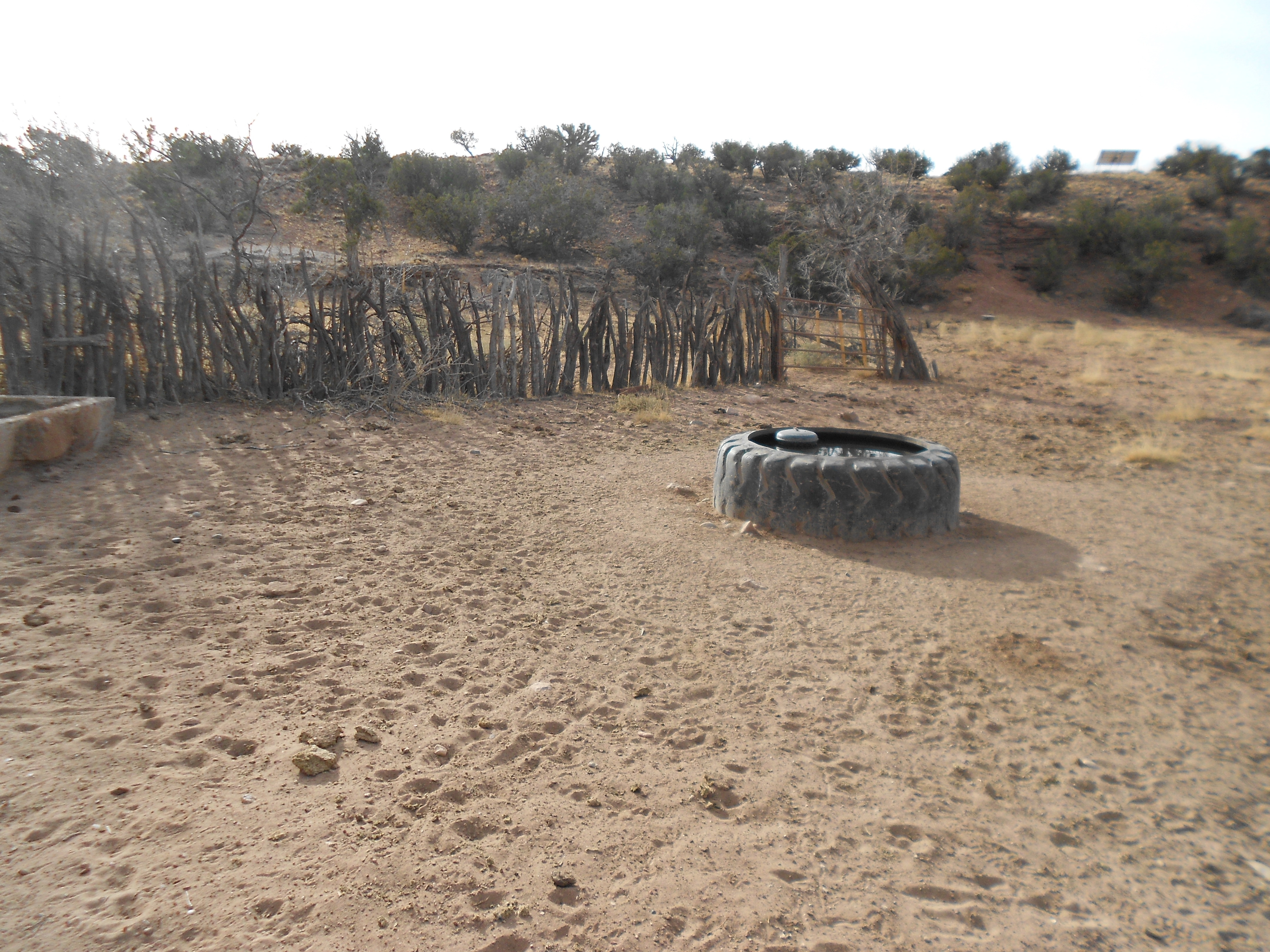 The cattle watering station down by the wash is shut down for the winter, but the tank is still full so the new trough is still full. Being made of a big truck tire that holds the sun heat, it’s not prone to freeze and it’s the only reliable open water I know of for miles around. Once the cattle are gone, the deer and elk return and you know they know that trough is there. So this morning I checked it out.