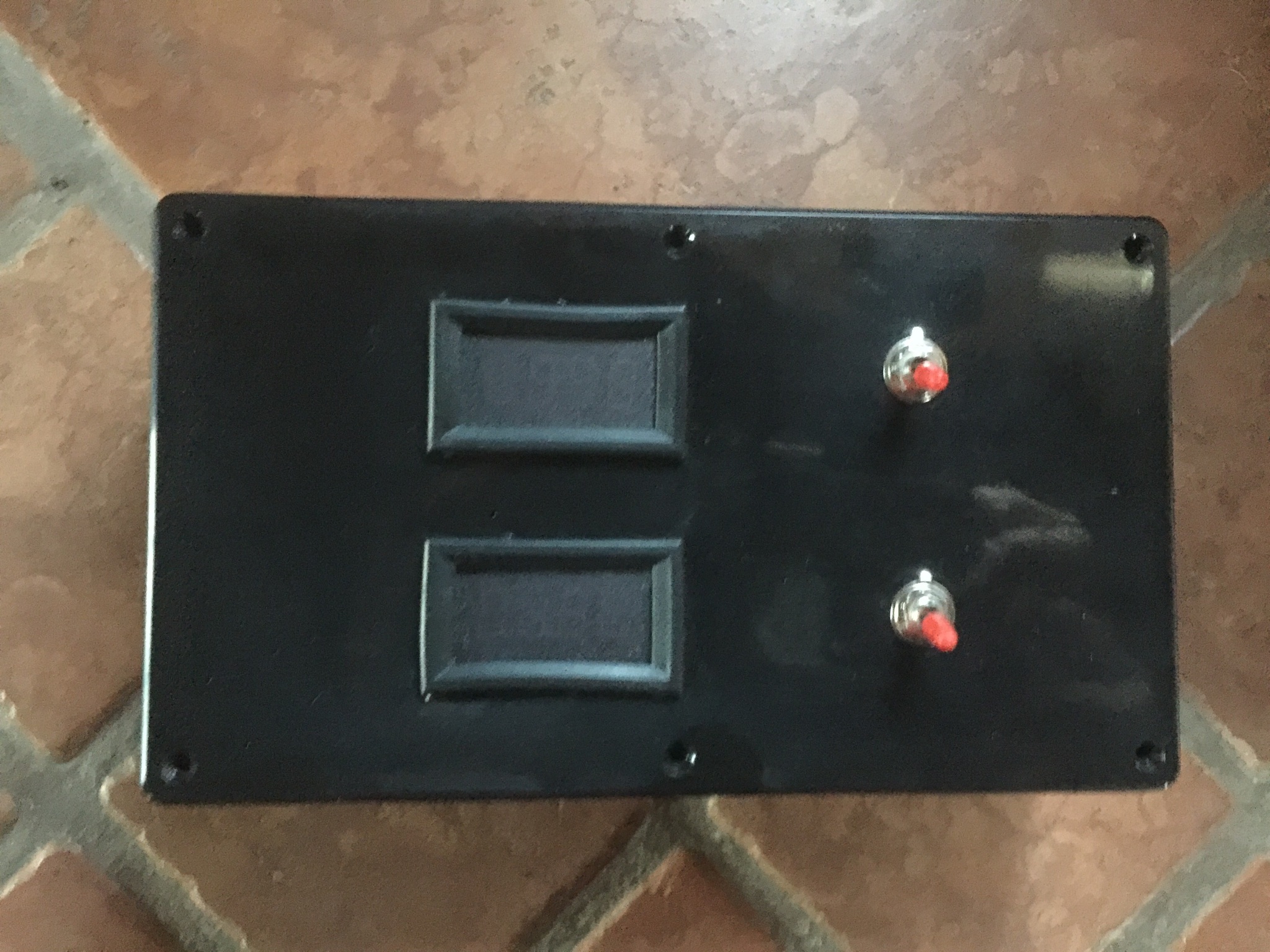 Which I made yesterday out of parts that came in this weekend’s care package dump. It has two four-digit displays, and will be powered with two separate lines – yet to be trenched and laid – directly from the batteries so it’ll show true battery voltage.