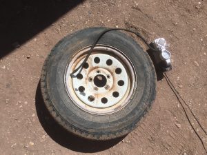 Betcha can’t guess where the trailer tire was leaking.