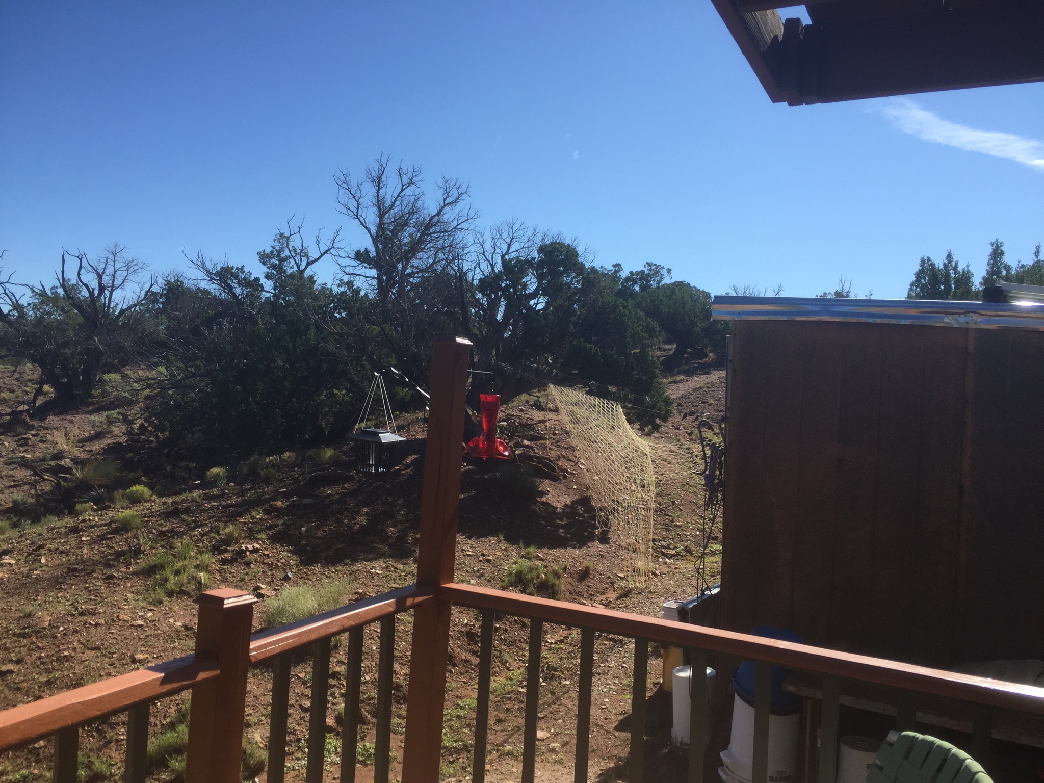 I think the Rufous hummingbirds have moved on; haven’t seen one causing trouble at the feeder in days. All we have left is clouds of these relatively drab green ones, and they’re much less given to drama. The Rufous are entertaining but exhausting to watch; they don’t seem to care as much about using the feeder as making sure nobody else can. Personally I like less conflict during meals.