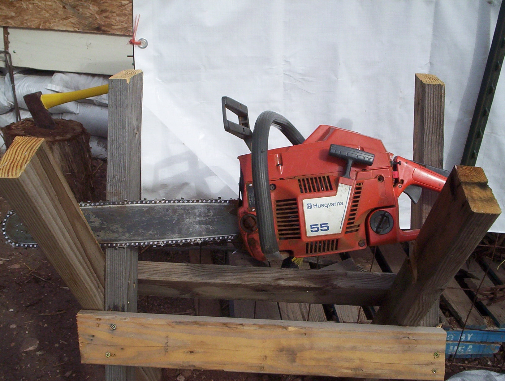 So now I’m back inside with the aspirin bottle, and the only thing I really accomplished this afternoon was tuning up the saw and getting set to cut wood. Never actually cut very much of it…