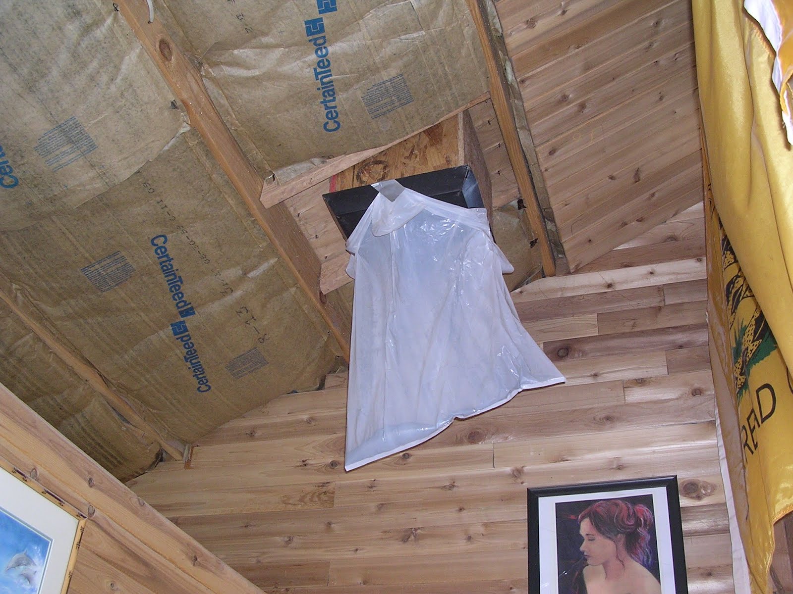 Taped a garbage bag under the ceiling box, to catch what fell.