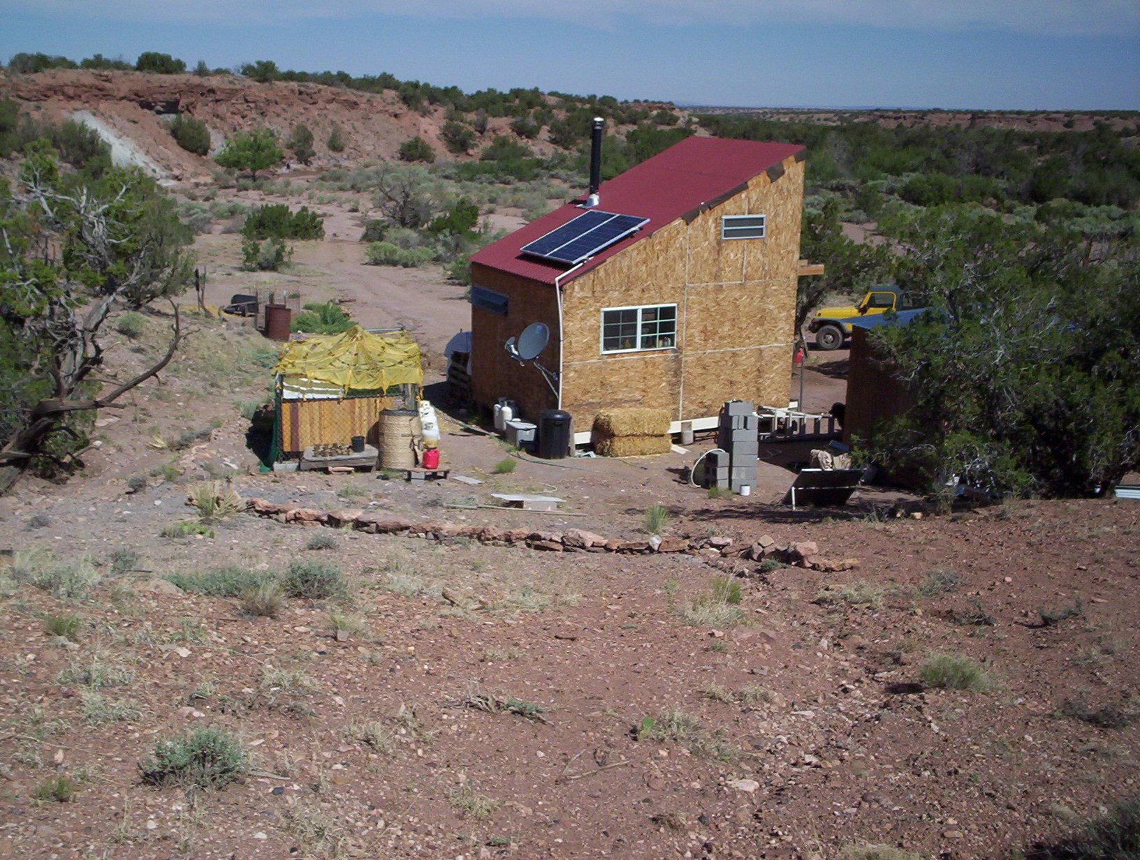 So I’m trying a low-tech solution, in this little respite we seem to be getting from Monsoon. I went out and gathered a whole bunch of thick shale slabs and other big rocks. Laid them in a line intersecting the infant gully, and sloping down toward the full-grown gully behind the Lair. We’ll see if we can’t divert that water and mud in a harmless direction.