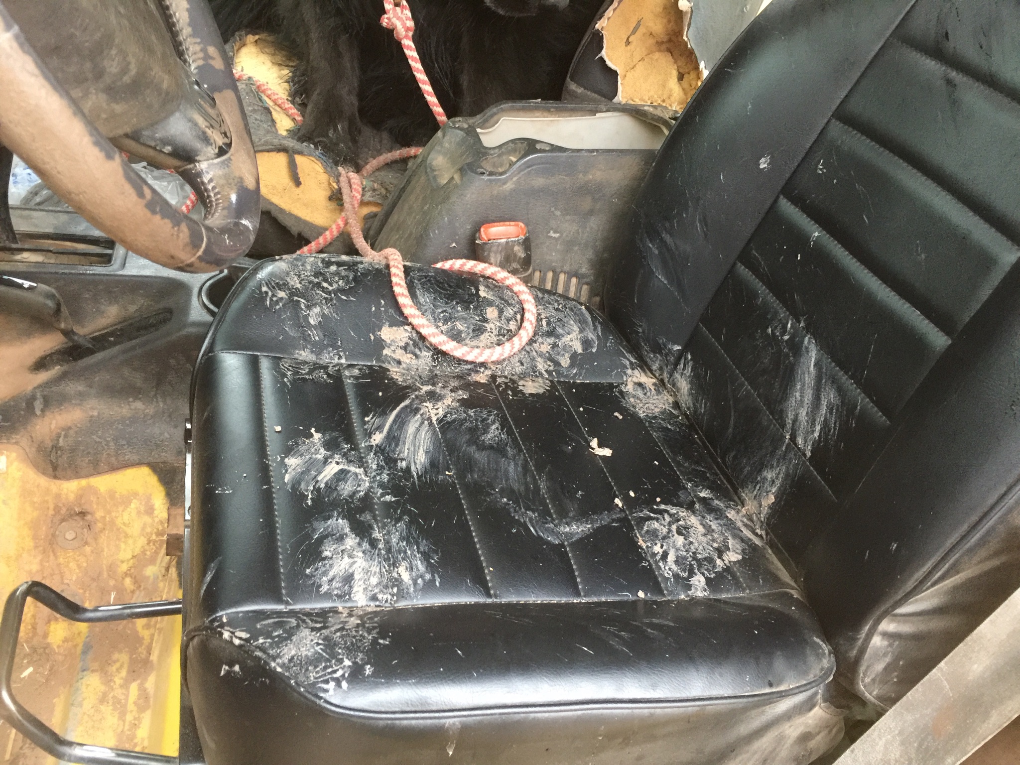 Anyway, I needed the Jeep trailer for the building materials. Thought at first I’d go to Landlady’s for chicken chores and then come back for the trailer so I didn’t have to tow it through that much mud. But I’d forgotten that the old Jeep seat is still in the trailer. So I brought the trailer to Landlady’s, to put the seat on the pile of stuff waiting to go to the landfill.