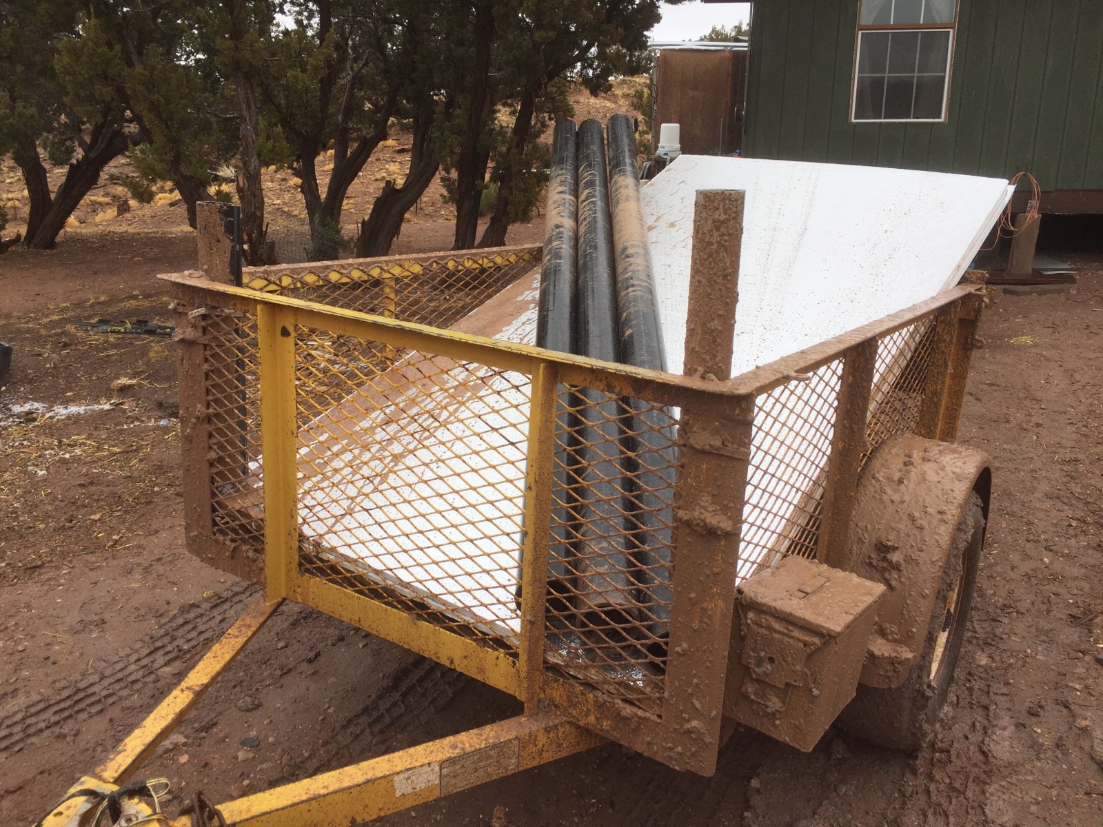 Got the trailer loaded and home without further mishap. The wood and insulation is under the addition now, all safe.